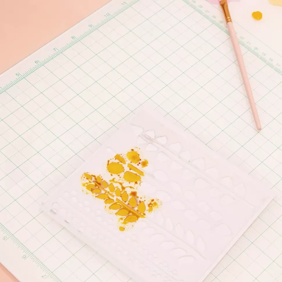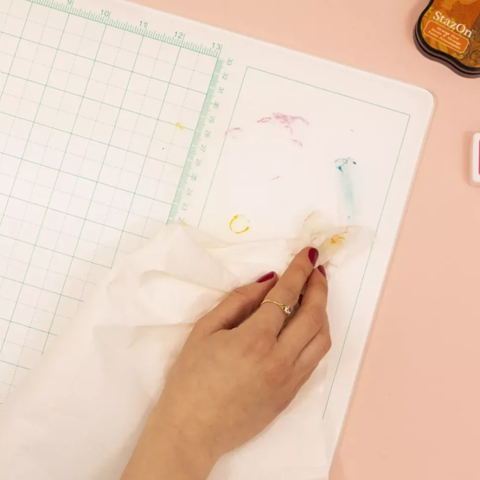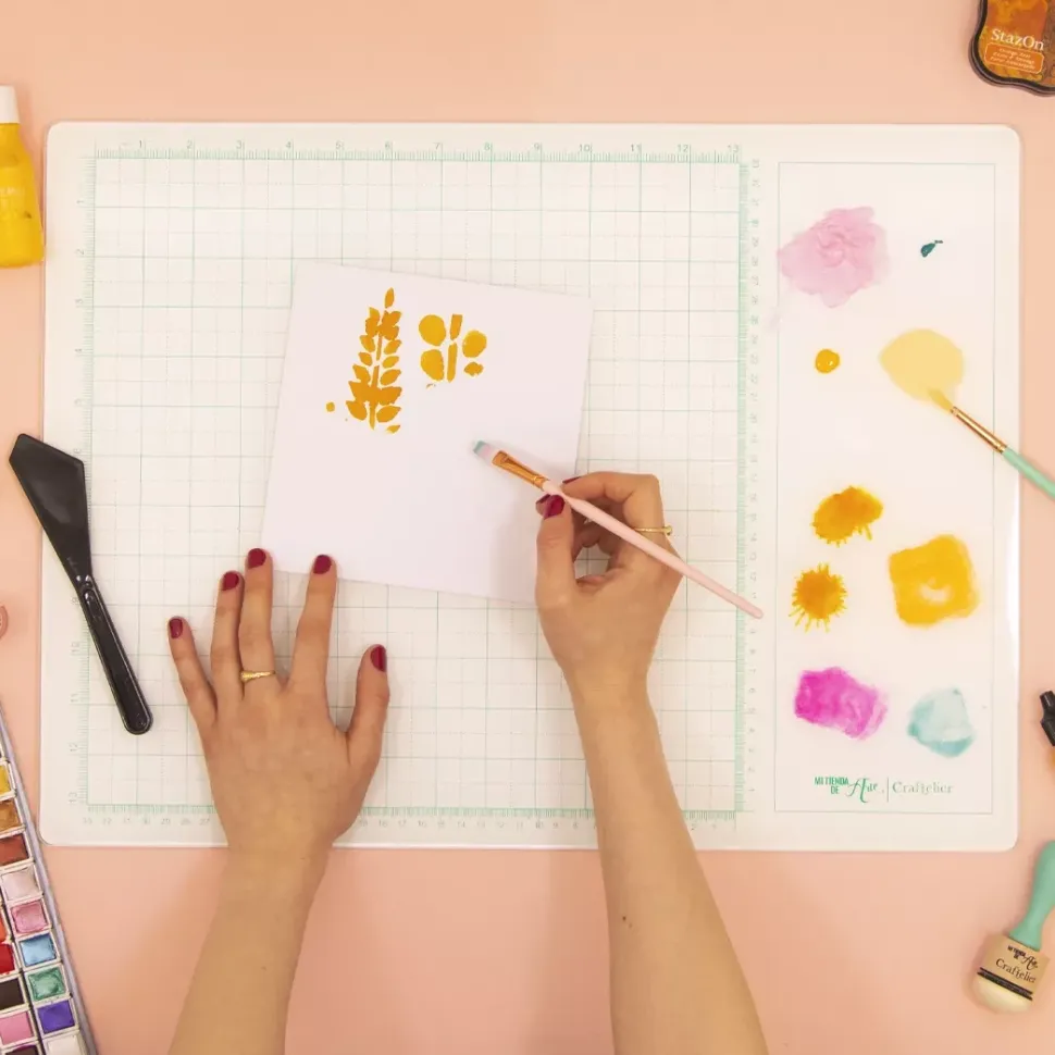 Es ideal para utilizarla con las tintas Distress o Distress Stain, pinturas acrílicas, pastas, puedes mezclar en la propia tabla de corte y limpiarlo con facilidad.