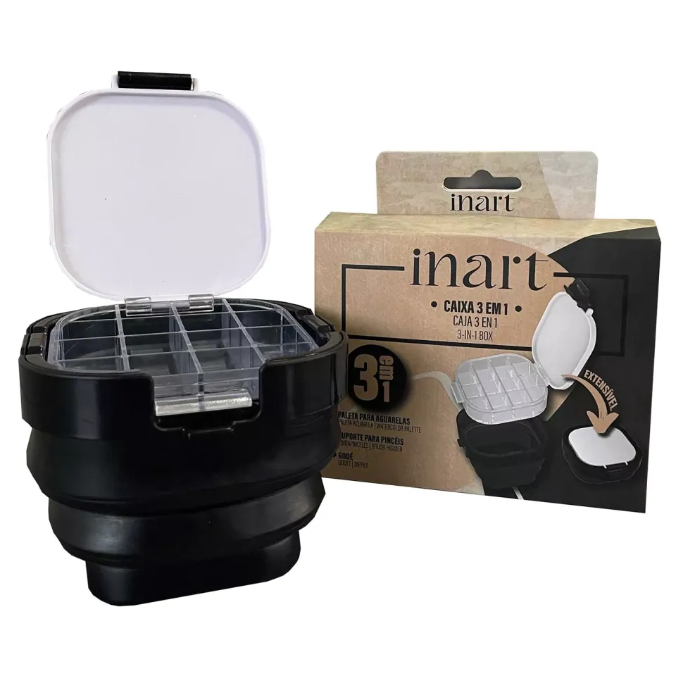 Caja 3 en 1 para acuarelas y pinceles Inart