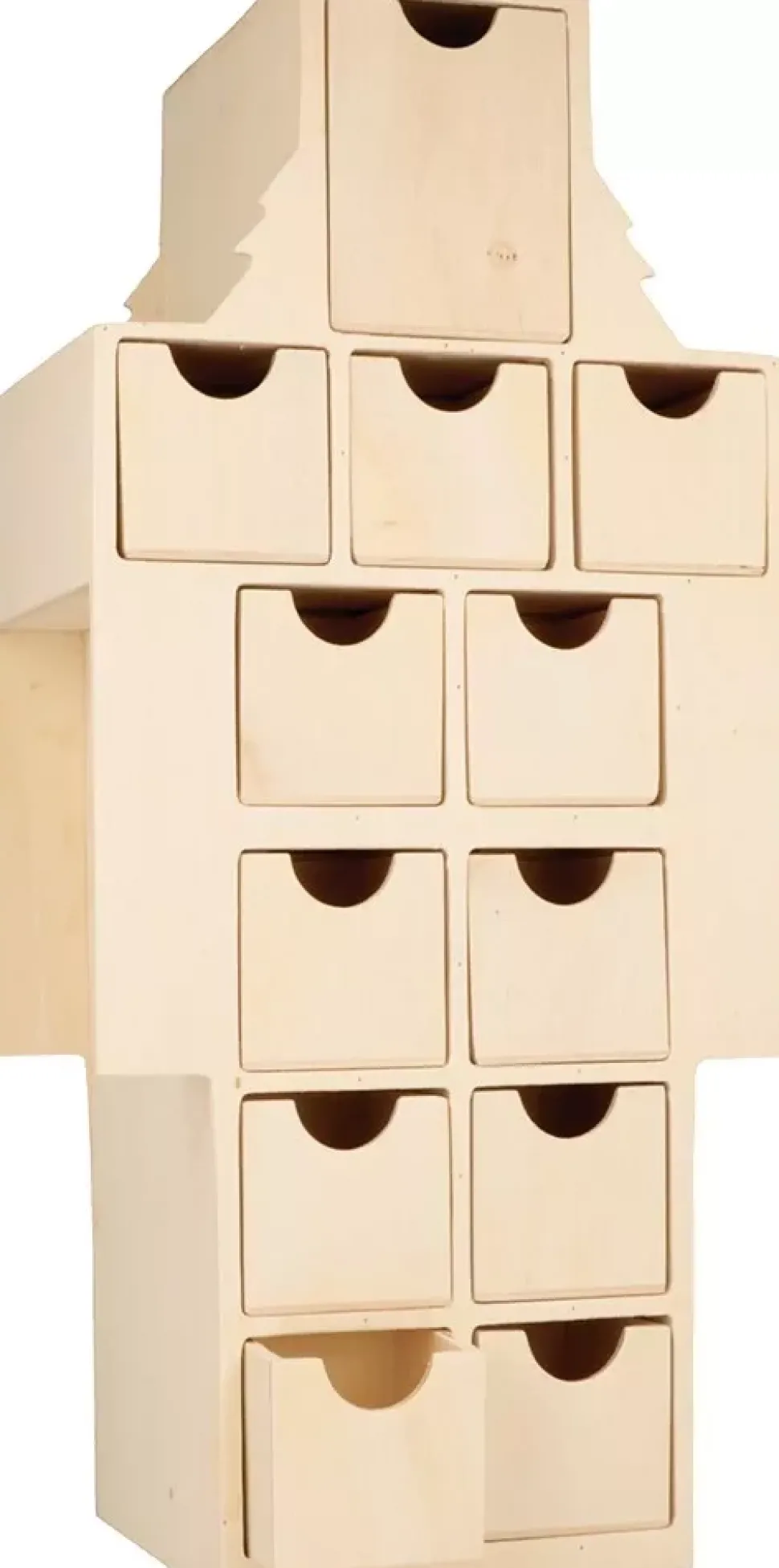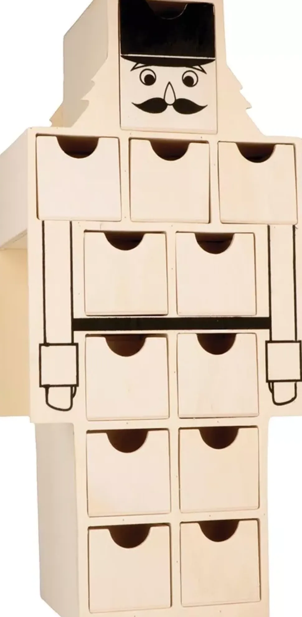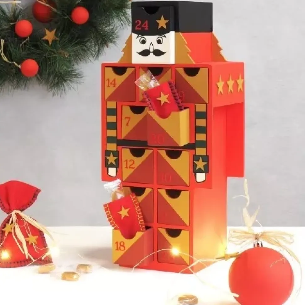 - Calendario de Adviento de madera en forma de soldadito cascanueces.