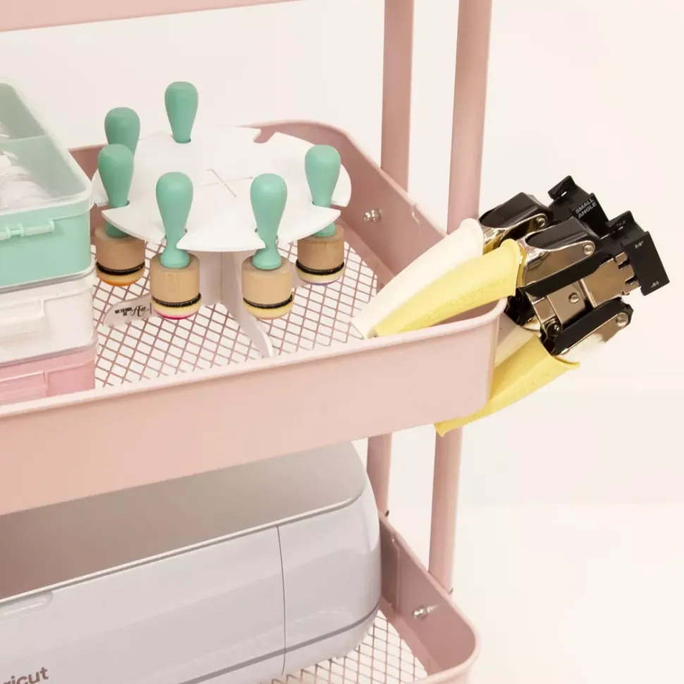 - Bonito, ligero y práctico. Este carro de organización es ideal para almacenar todo nuestro material de scrapbooking, manualidades o costura y poder tenerlo siempre a mano.