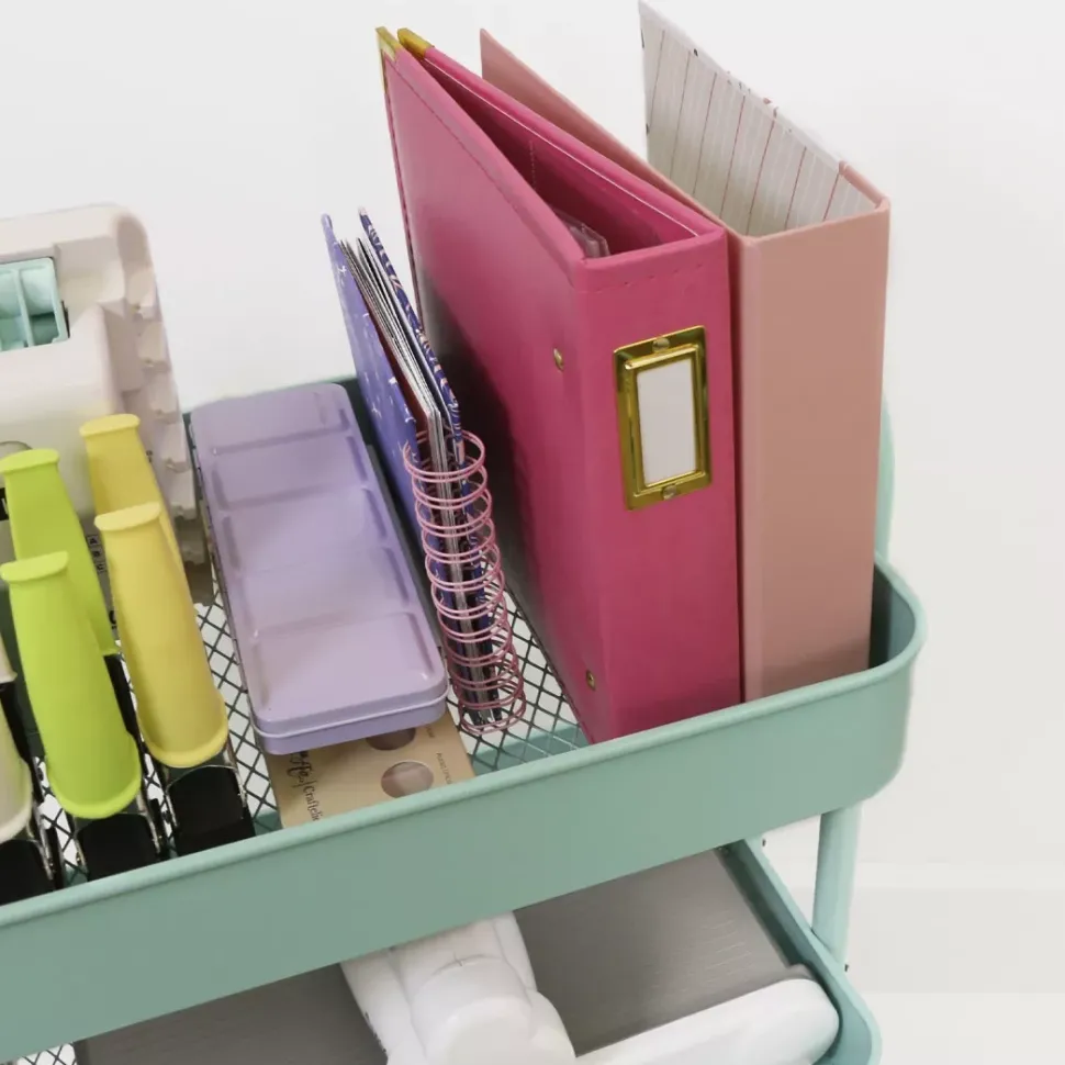 - Bonito, ligero y práctico. Este carro de organización es ideal para almacenar todo nuestro material de scrapbooking, manualidades o costura y poder tenerlo siempre a mano.