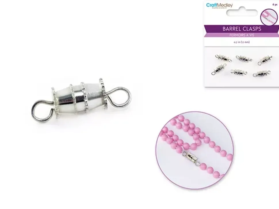 - Conjunto de 6 cierres de barril plateados.