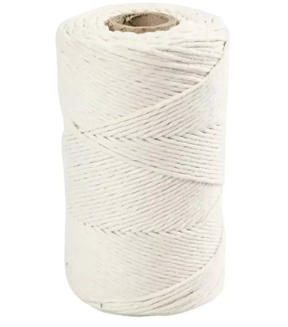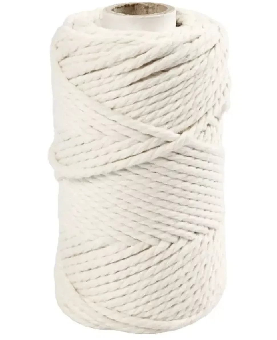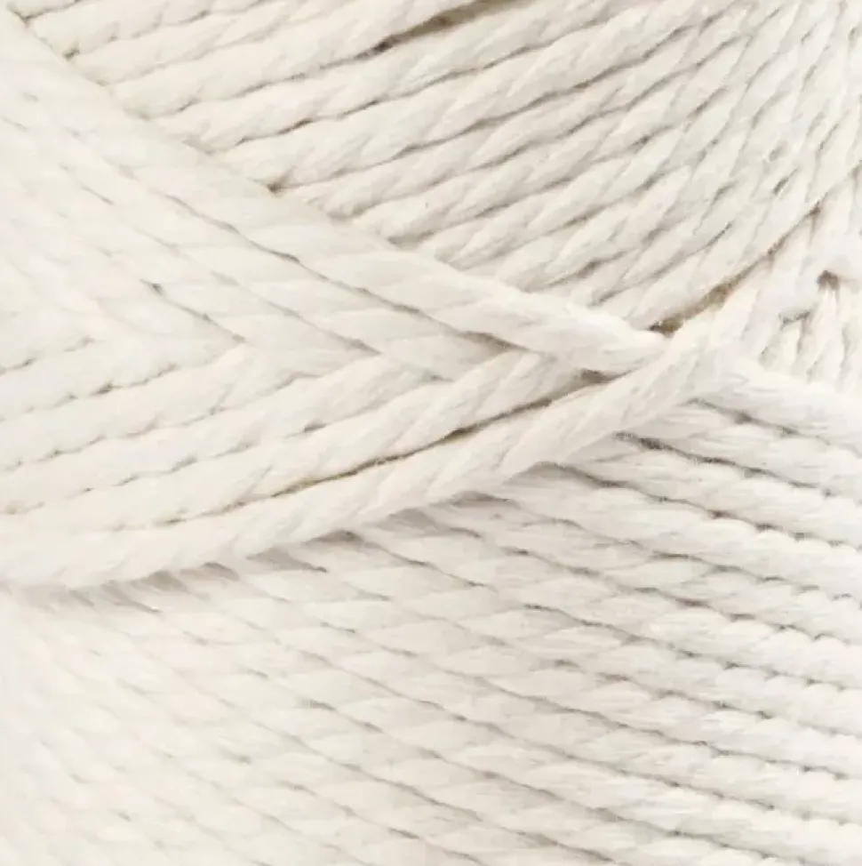 - Hilo de macramé de tres hilos y tres hilos hechos de 20% algodón reciclado y 80% poliéster.