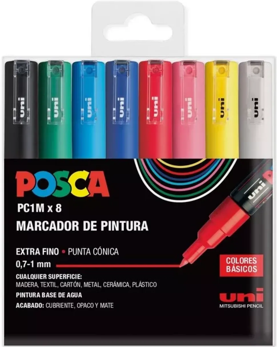 Estuche 8 rotuladores PC1M Extra Fino Uni Posca 3M