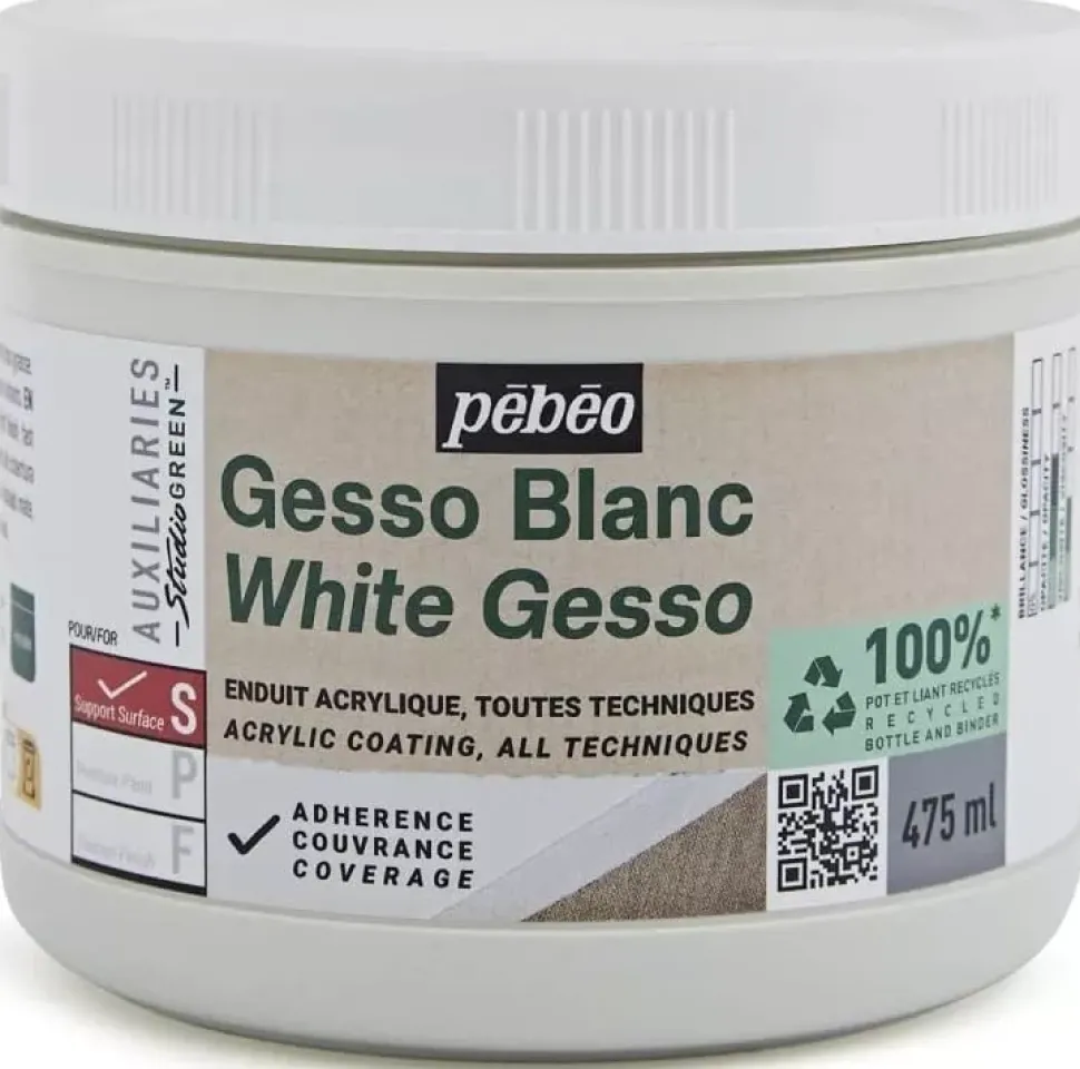 Gesso es un apresto universal utilizado para preparar soportes para pintarlos, tales como lienzos, cartón, madera… Su superficie mate permite mejorar la adherencia de las capas de pintura acrílica o al óleo, y se aplica sobre una superficie limpia y libre de grasa con pincel, espátula, rodillo… Puede lijarse después de la aplicación para obtener una superficie perfectamente lisa.
