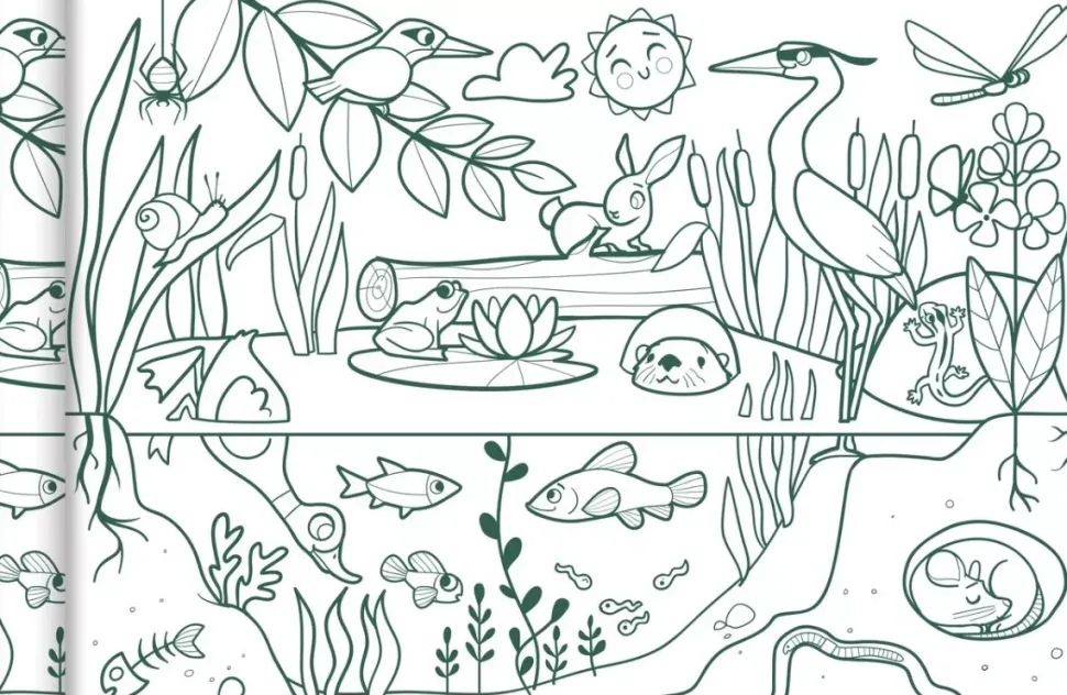 - Póster para colorear con el dibujo de un ecosistema.