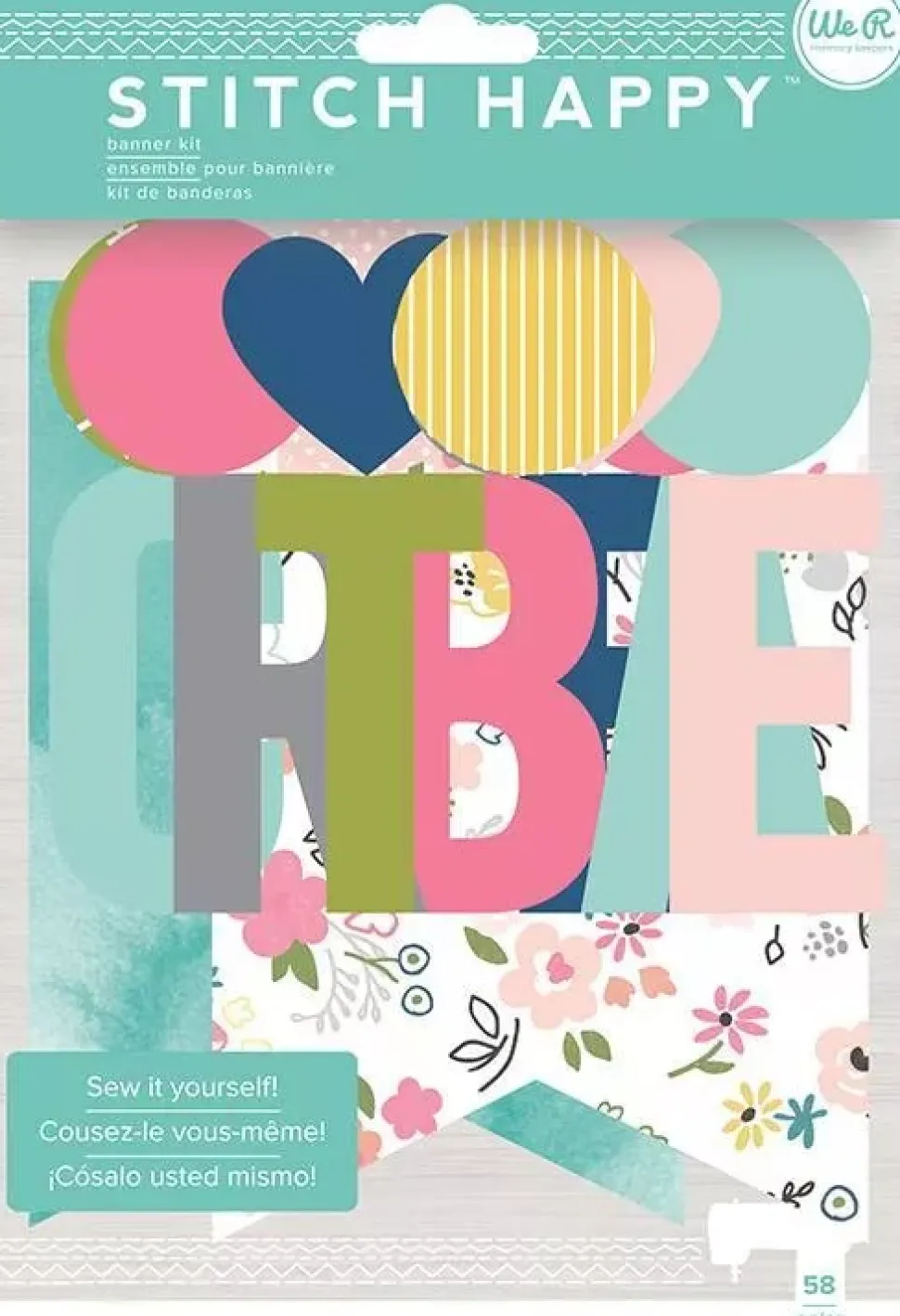 - Set de complementos para hacer banderines con la máquina de coser Stitch Happy.