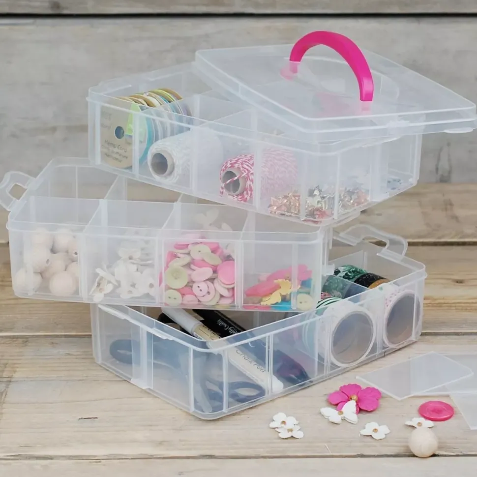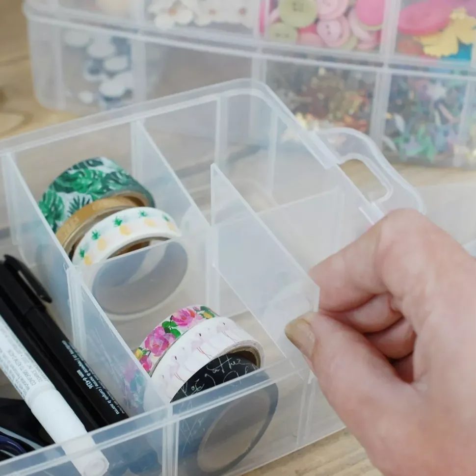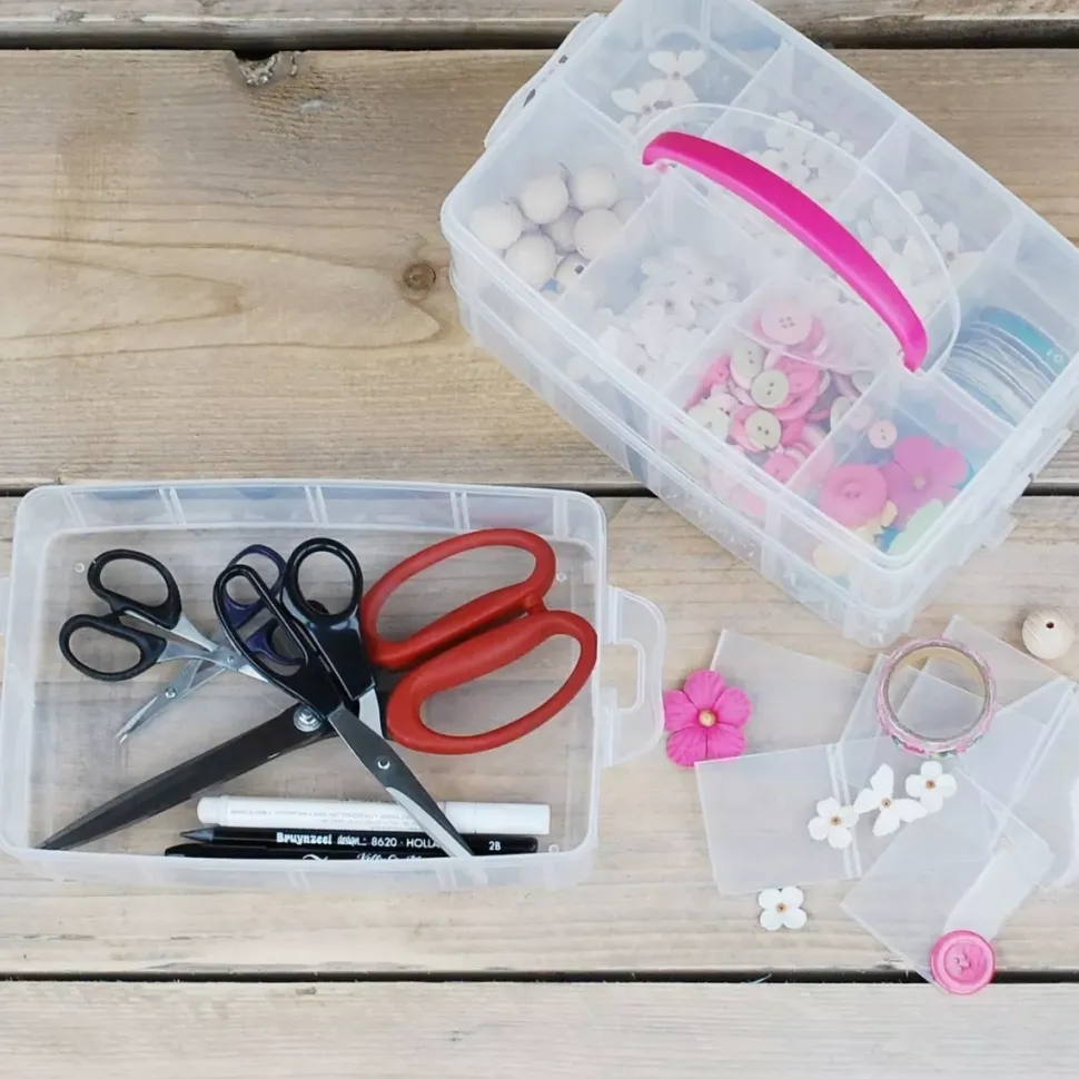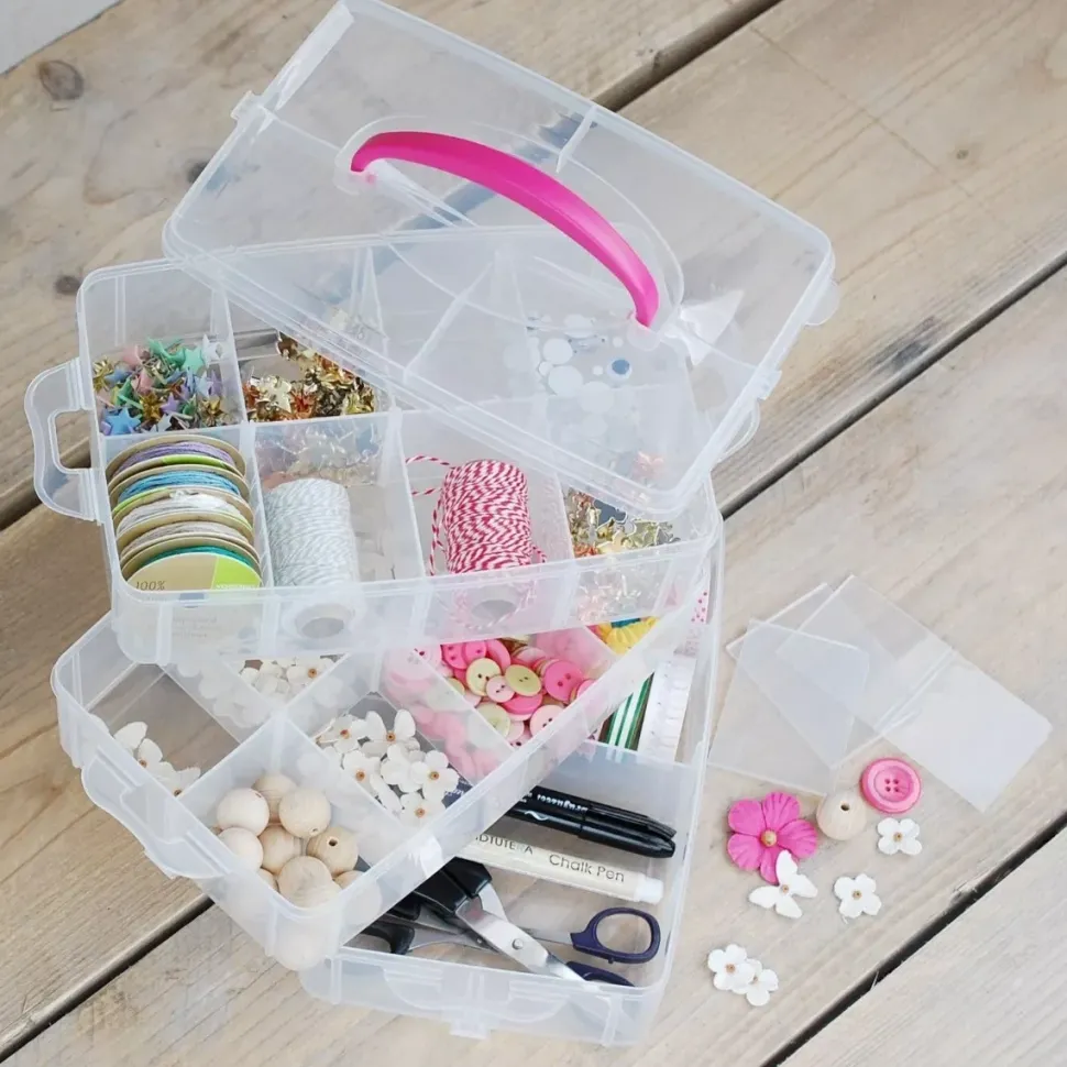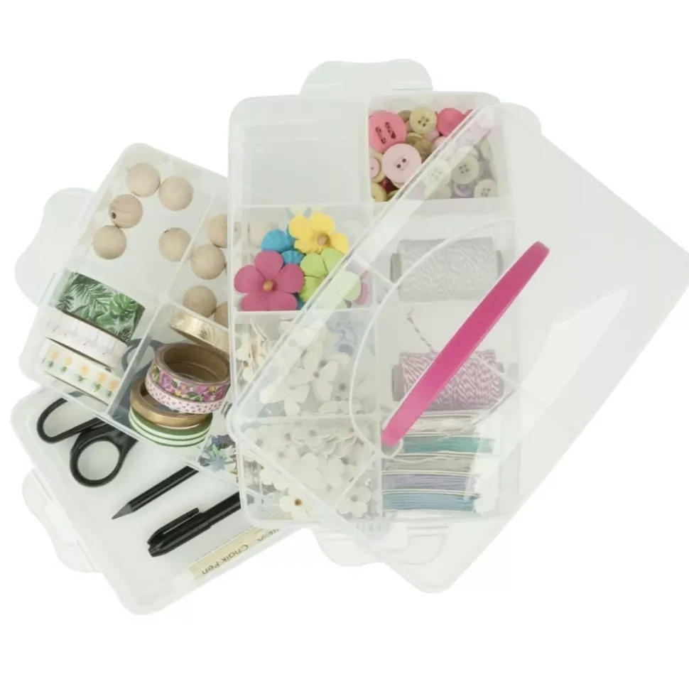 Perfecto para no perder los pequeños detalles que marcan la diferencia en el scrapbooking. Contiene divisiones y cierre.