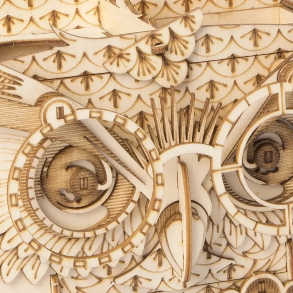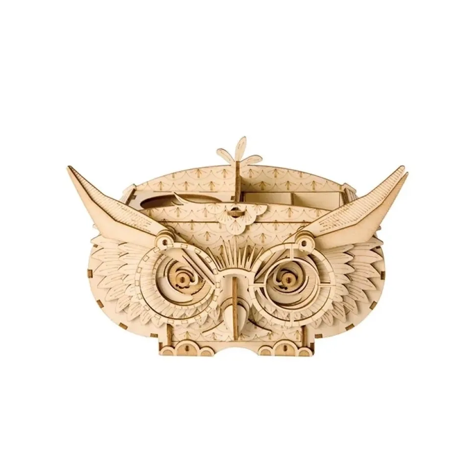 - Crea tu propia caja para guardar bolígrafos con este rompecabezas de madera 3D con forma de búho: un accesorio delicado y útil para la oficina y el hogar.