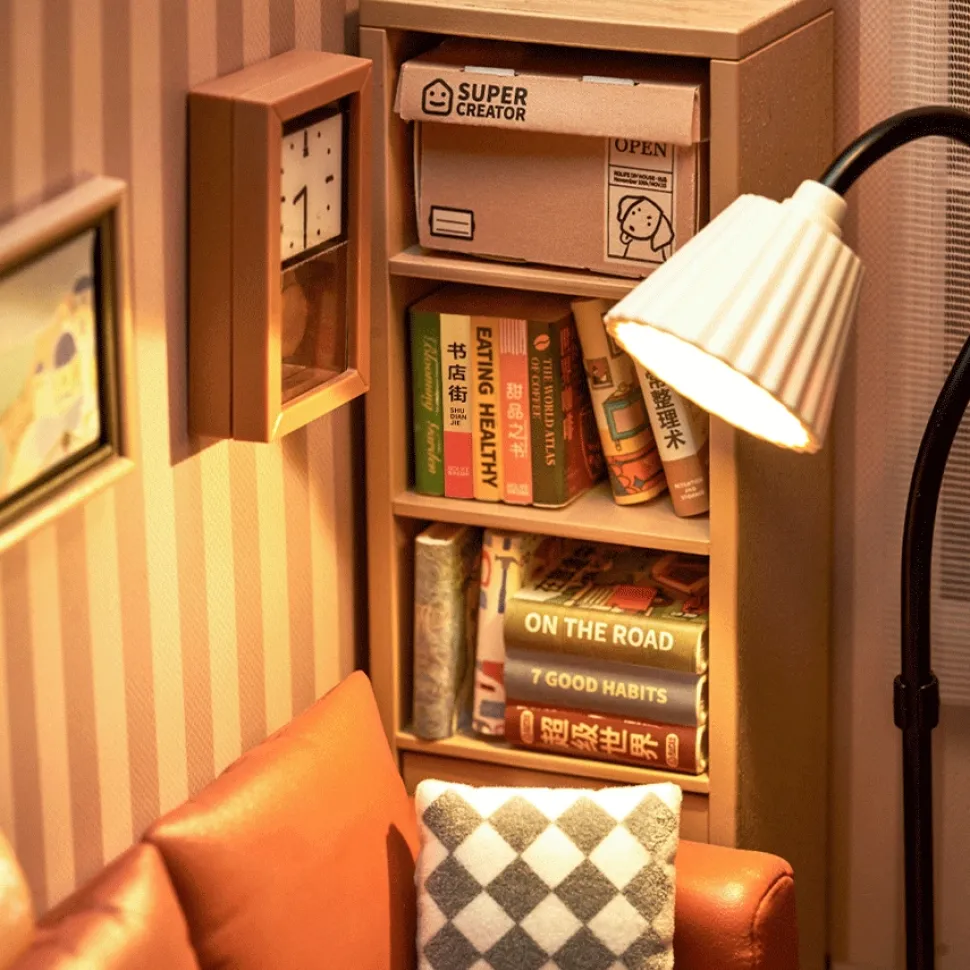 - Sumérgete en un espacio en miniatura lleno de tranquilidad y calidez con la casa en miniatura Cozy Living Lounge y encuentra total comodidad después de un día de trabajo.