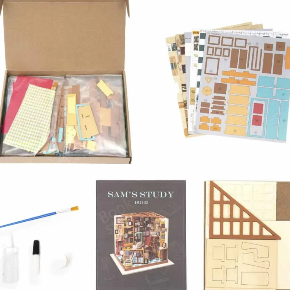 - Este kit de casa de muñecas en miniatura es una réplica del estudio biblioteca de estilo clásico de Sam y tiene todas las piezas y detalles incluidos.