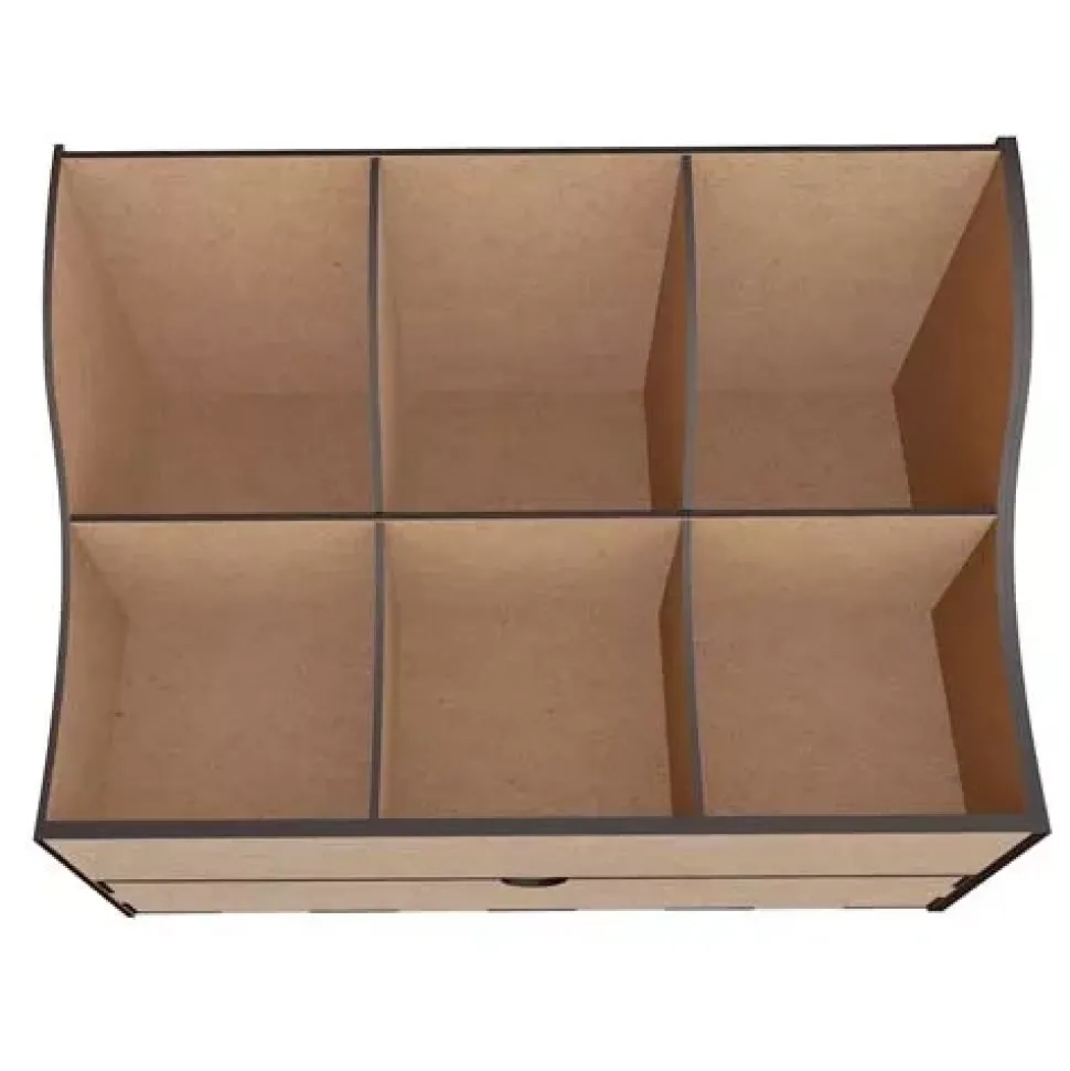 - Contiene 6 huecos cuadrados de gran capacidad y una cajonera.