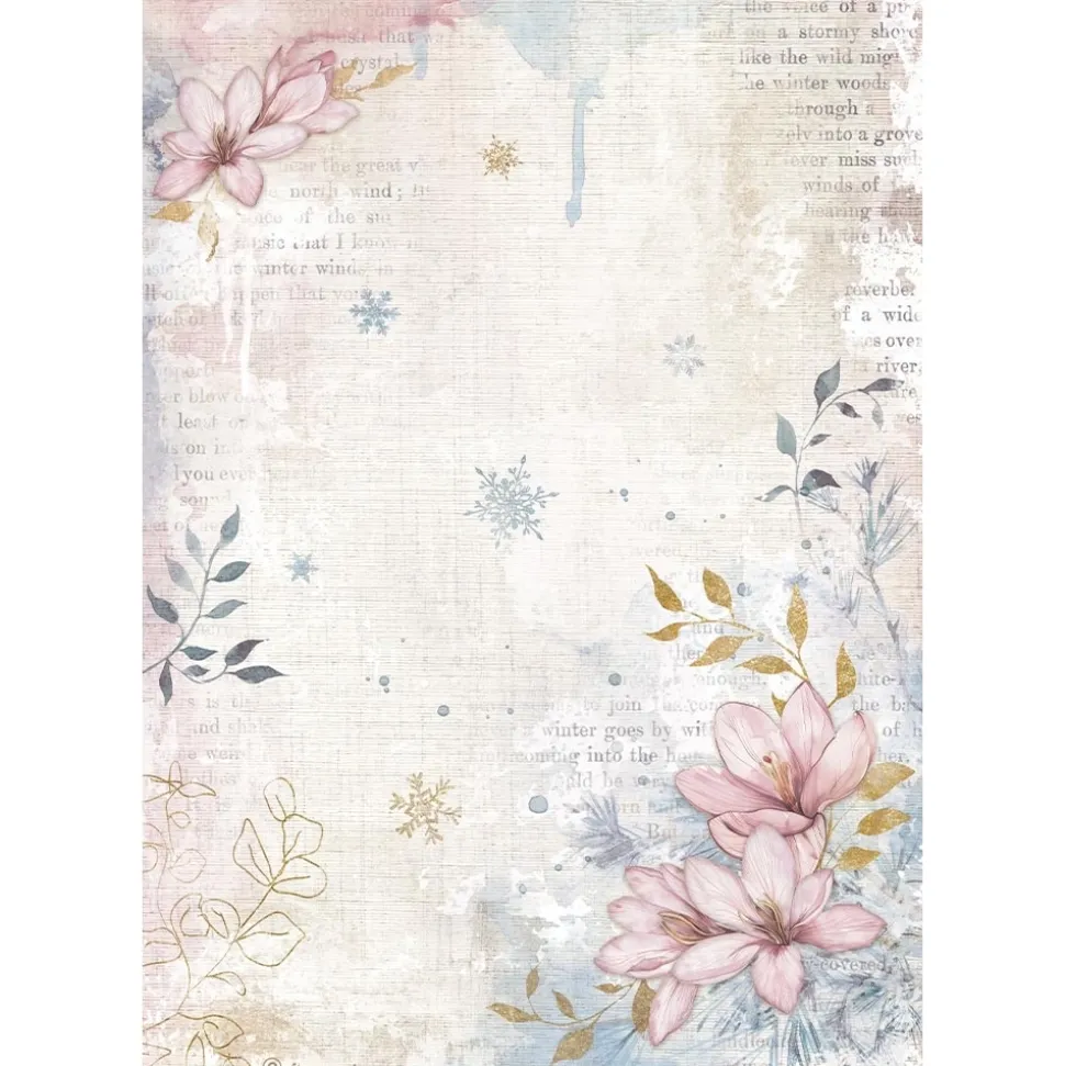 - Papel de arroz decorado diseñado por Stamperia con un gramaje muy bajo cuya ligereza y adaptabilidad a casi cualquier superficie lo hace apto para cualquier técnica de decoupage.