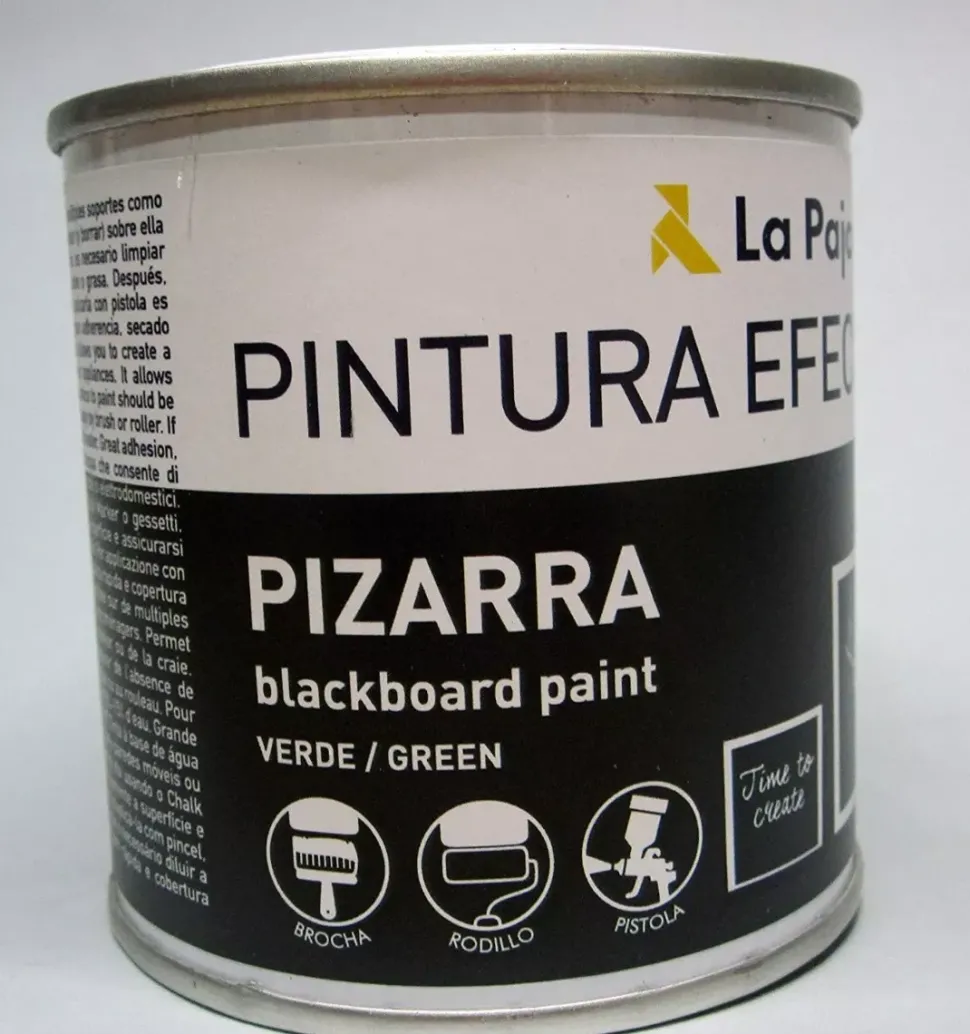 Pintura con base de agua que permite crear una pizarra en múltiples soportes como paredes, muebles o electrodomésticos.