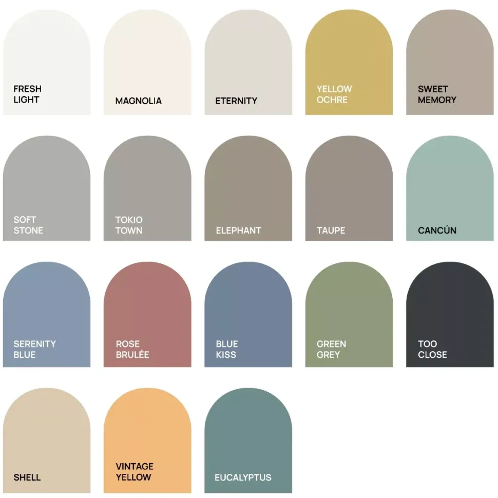 - La gama está formada por 18 colores que complementan una sofisticada mezcla de tonalidades, con el particular toque delicado de Eggshell Paint.