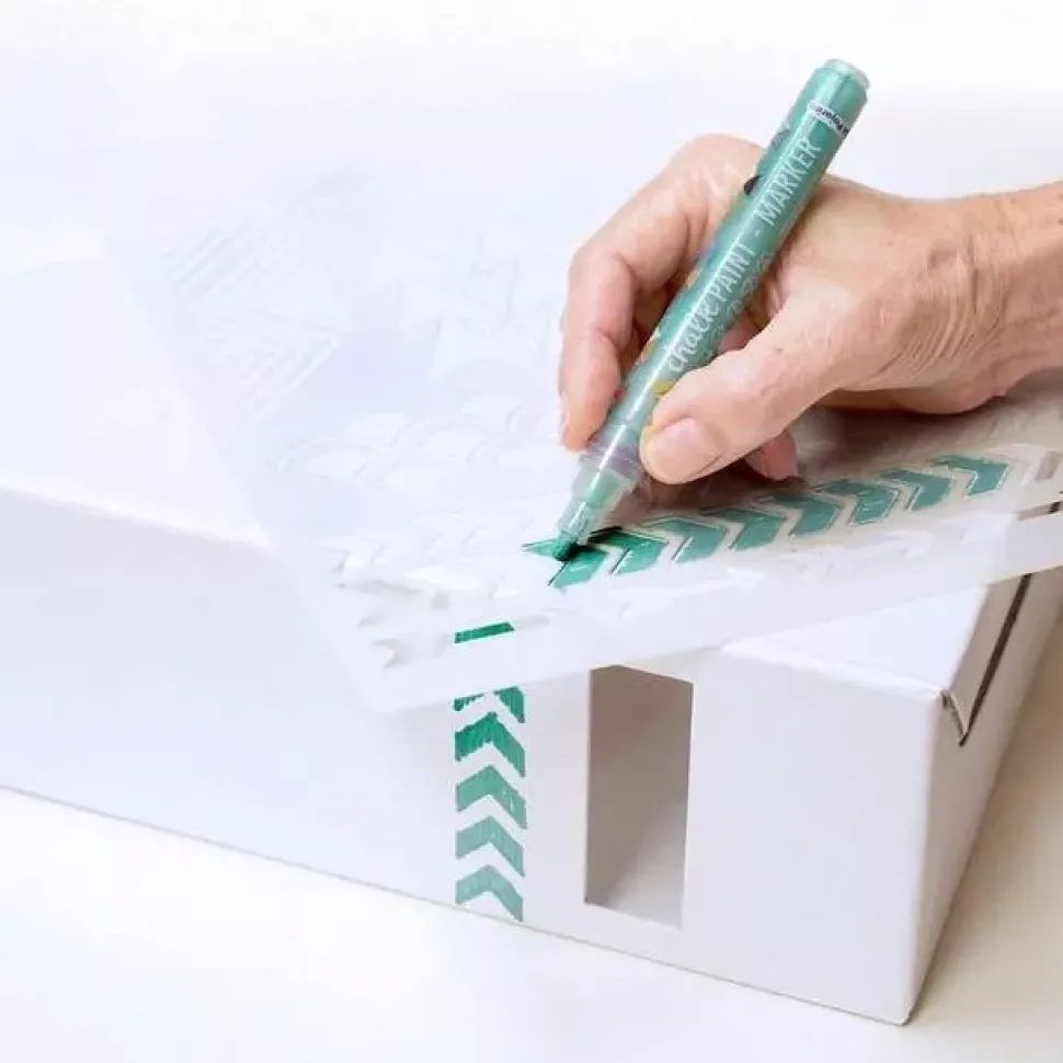 - Utiliza los rotuladores con plantillas de stencil, o personaliza tus diseños añadiendo lettering y caligrafía en cualquier superficie escribiendo con total facilidad.