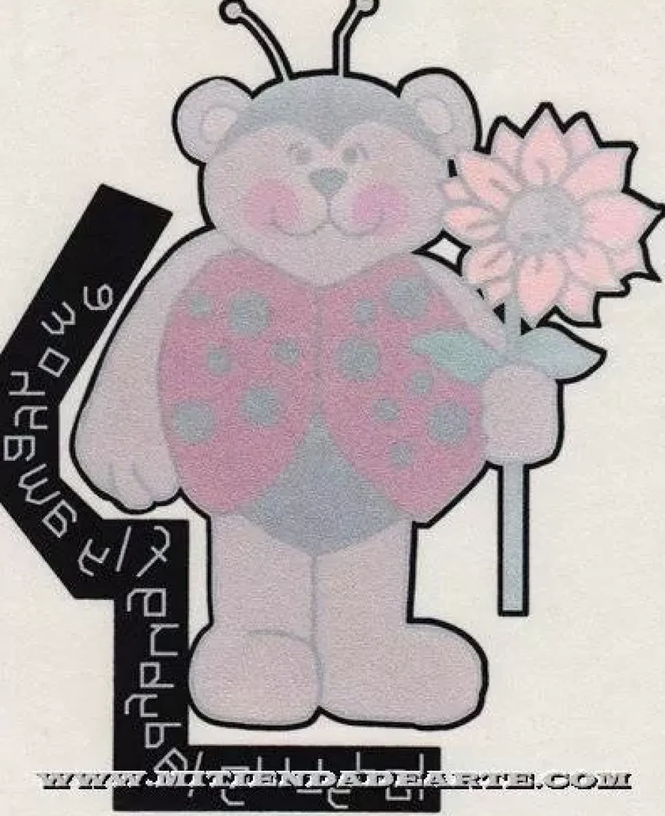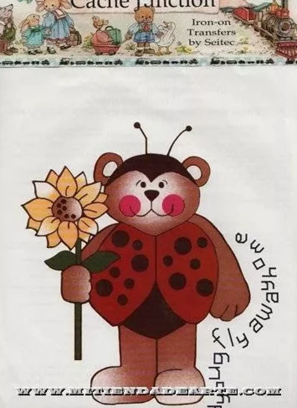 – Oso vestido de marquita con girasol. Ladybug Bear. – Medidas: 20×25 cm. Transferible para telas de algodón y rayón, se adhiere directamente con el calor de la plancha sin vapor. Lavable incluso en la lavadora. No se debe aplicar sobre tejidos de nylon. Valour transfer to cotton and rayon fabrics, attaches directly to the heat of the iron without steam. Even in the washing machine washable. Do not apply on nylon fabrics.