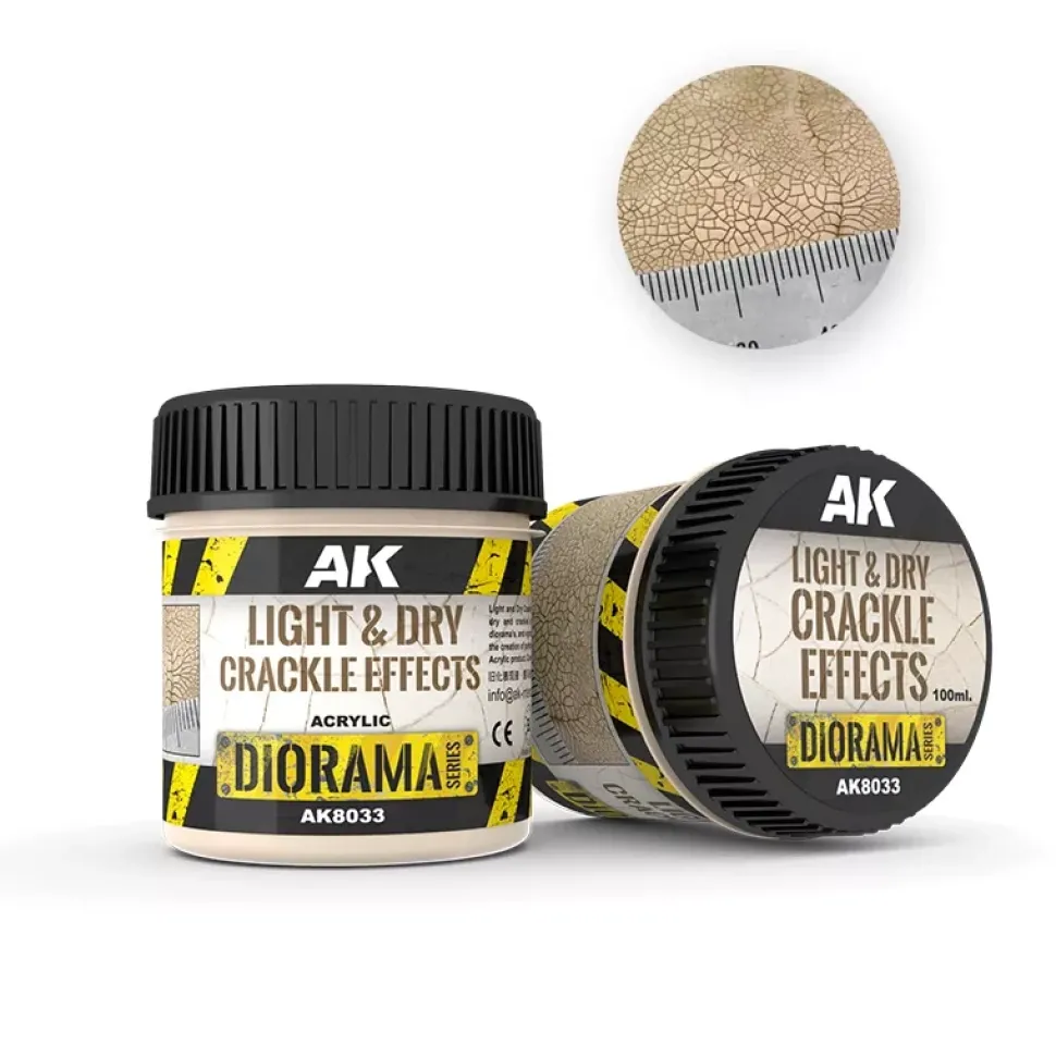 - Light and Dry Crackle Effects es perfecto para crear suelos secos y agrietados en las superficies inferiores de vehículos, dioramas y viñetas.