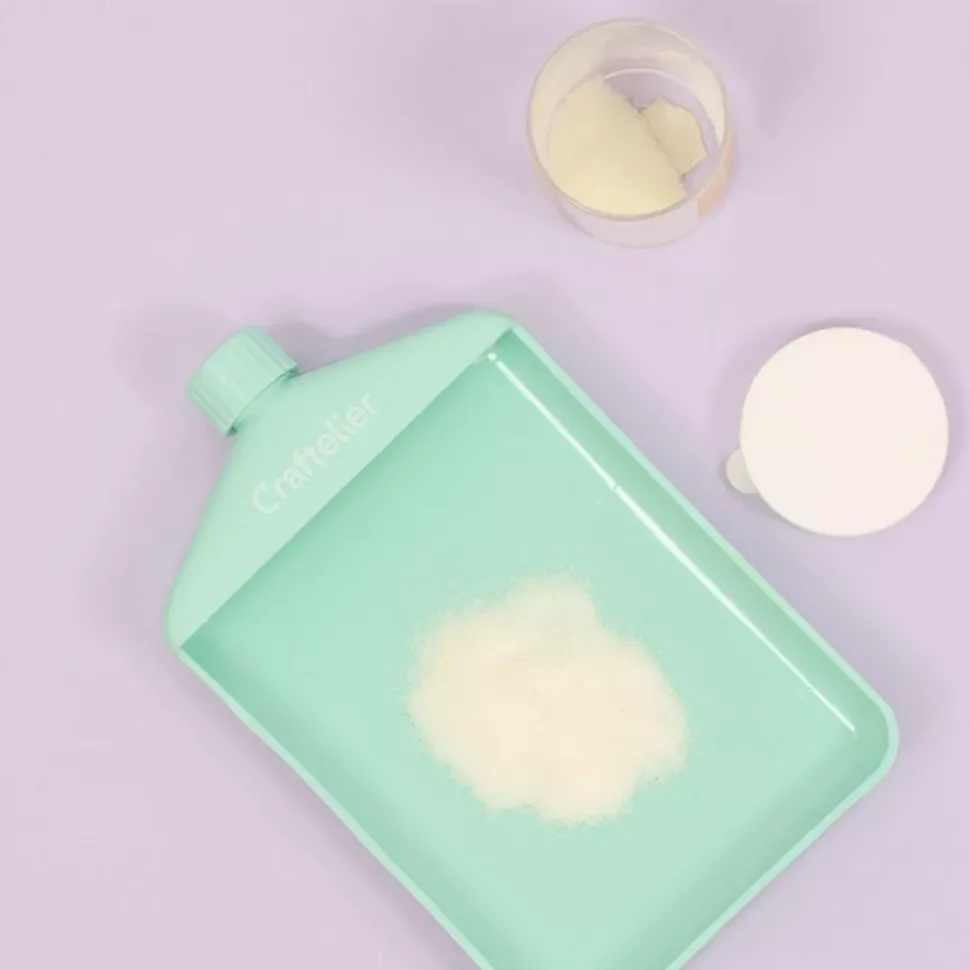 - Bandeja rígida, pensada para que no desperdicies nada de material como purpurina, polvos de embossing o lentejuelas.