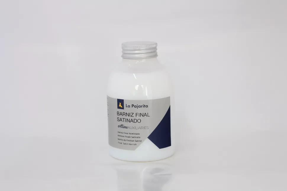 Barniz al agua con un acabado satinado y duradero. Puede utilizarse como acabado satinado para la pintura acrílica o directamente sobre la madera.
