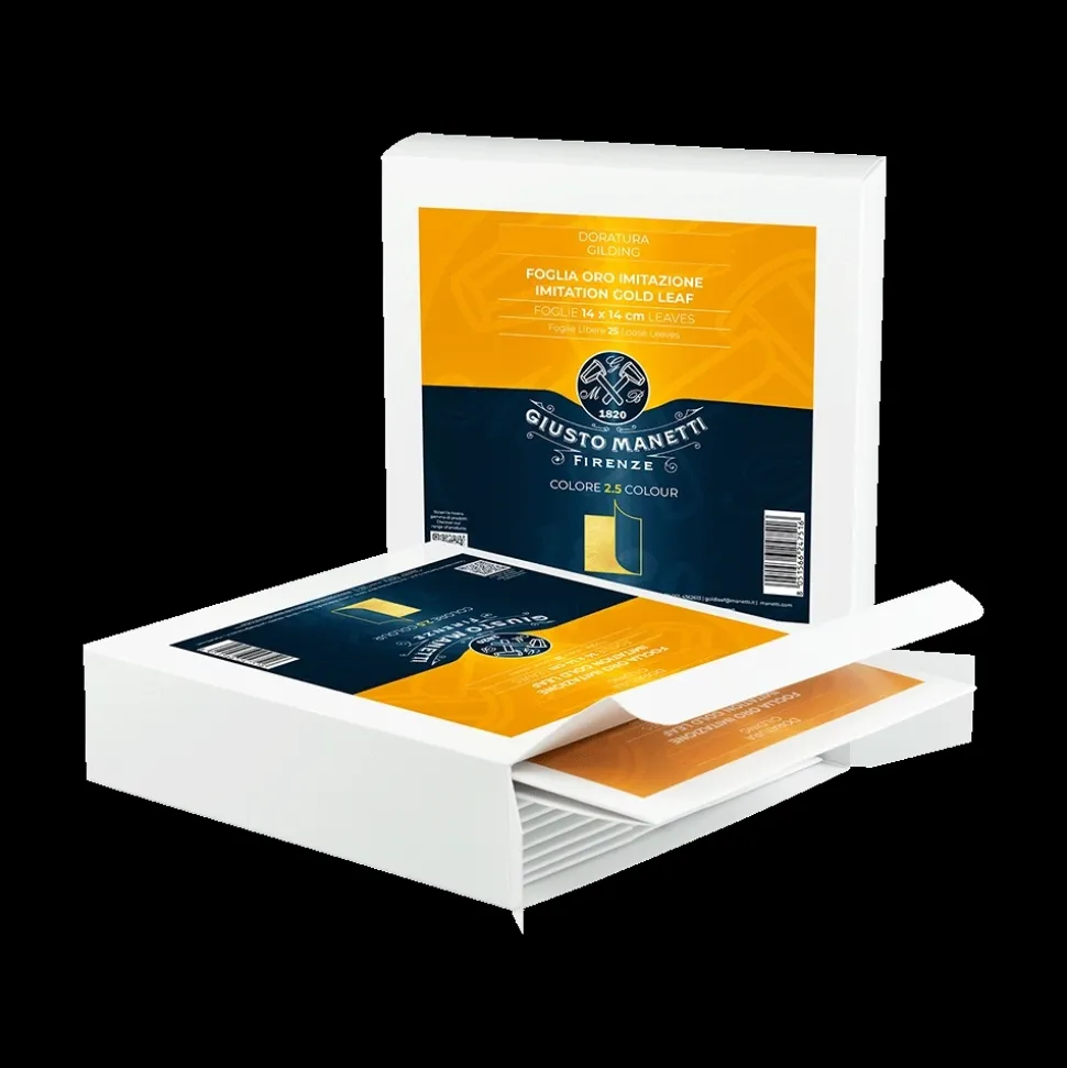 Caja 20 libros 25 hojas imitación pan de oro Color 2 Giusto Manetti 14x14cm