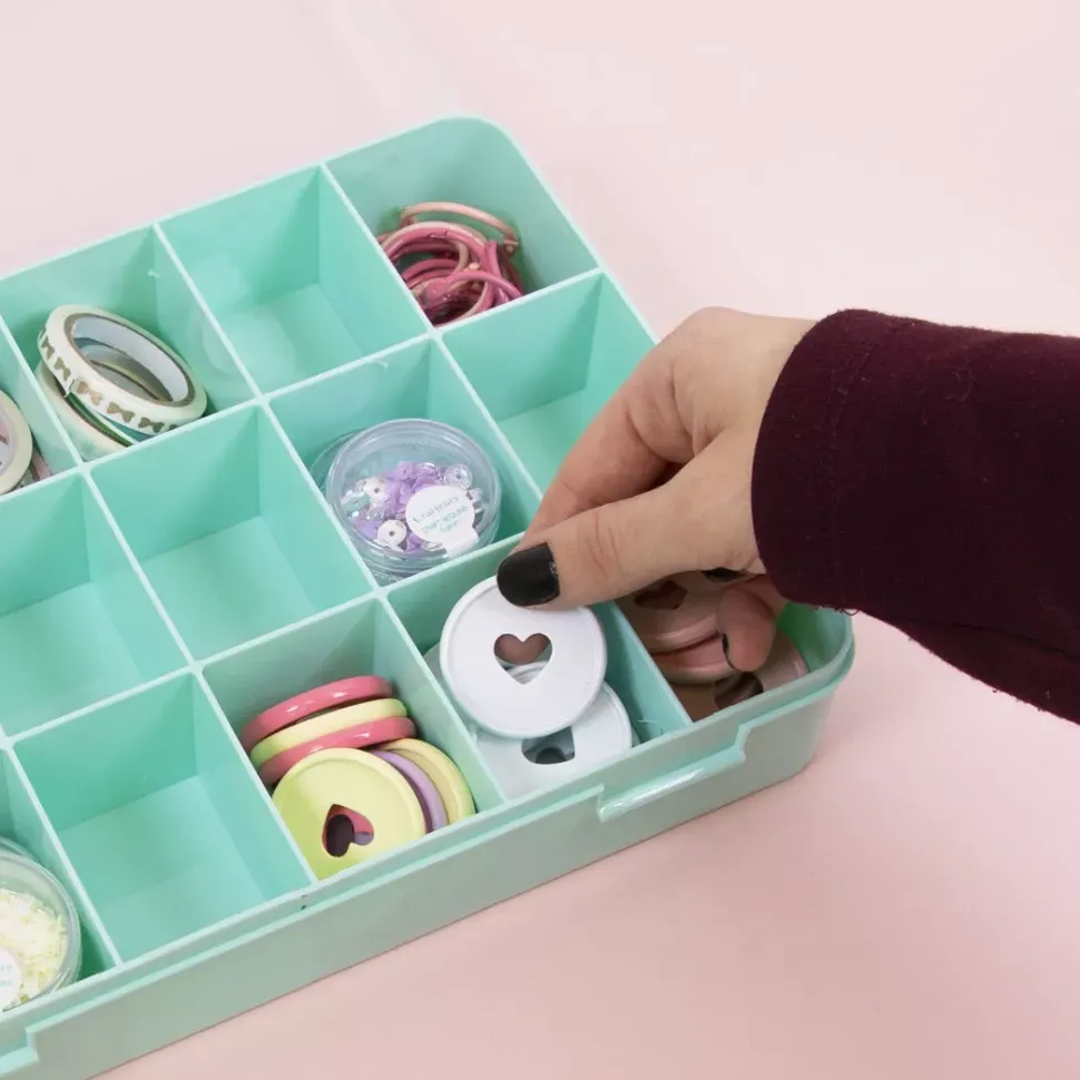- Se acabó perder adornos o piezas pequeñas. O tener las lentejuelas desperdigadas. Con esta caja con 17 compartimentos tendrás todo organizado y a la vista para encontrar lo que necesitas rápidamente.