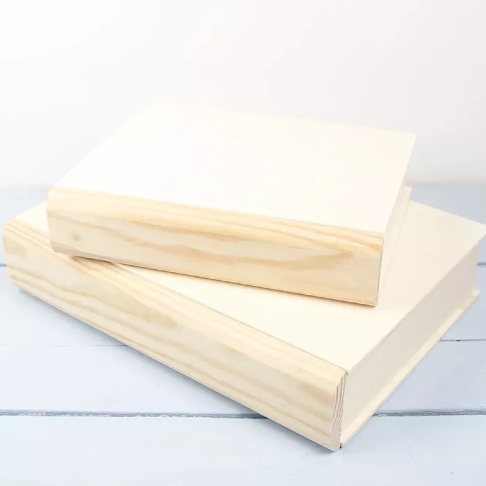 Caja en forma de libro con cajón extraíble perfecto para guardar recuerdos o cualquier álbumes pequeños. Puede decorarse con técnicas de decoupuage, con papeles de arroz, servilletas o incluso de scrapbooking. También apto para pinturas acrílicas o Chalky Paint.