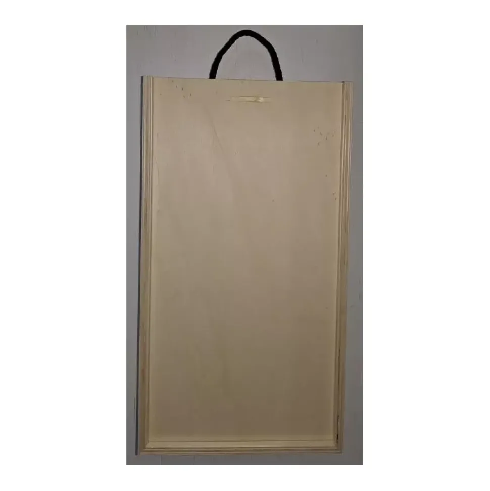 - Caja botellero con capacidad para dos botellas con tapa y asa para llevar.