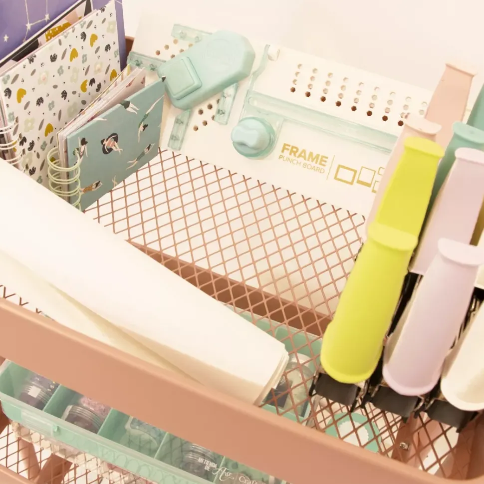 - Bonito, ligero y práctico. Este carro de organización es ideal para almacenar todo nuestro material de scrapbooking, manualidades o costura y poder tenerlo siempre a mano.