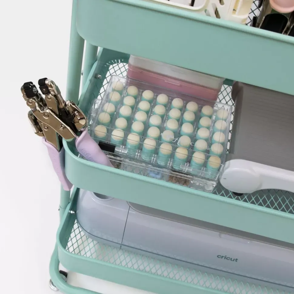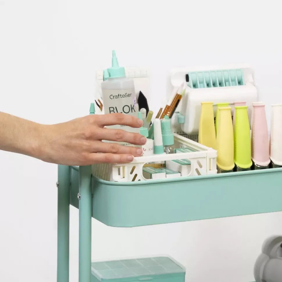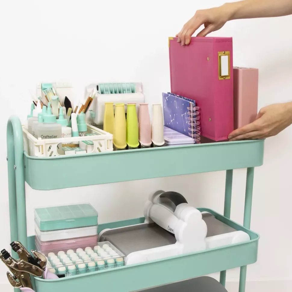 - Bonito, ligero y práctico. Este carro de organización es ideal para almacenar todo nuestro material de scrapbooking, manualidades o costura y poder tenerlo siempre a mano.