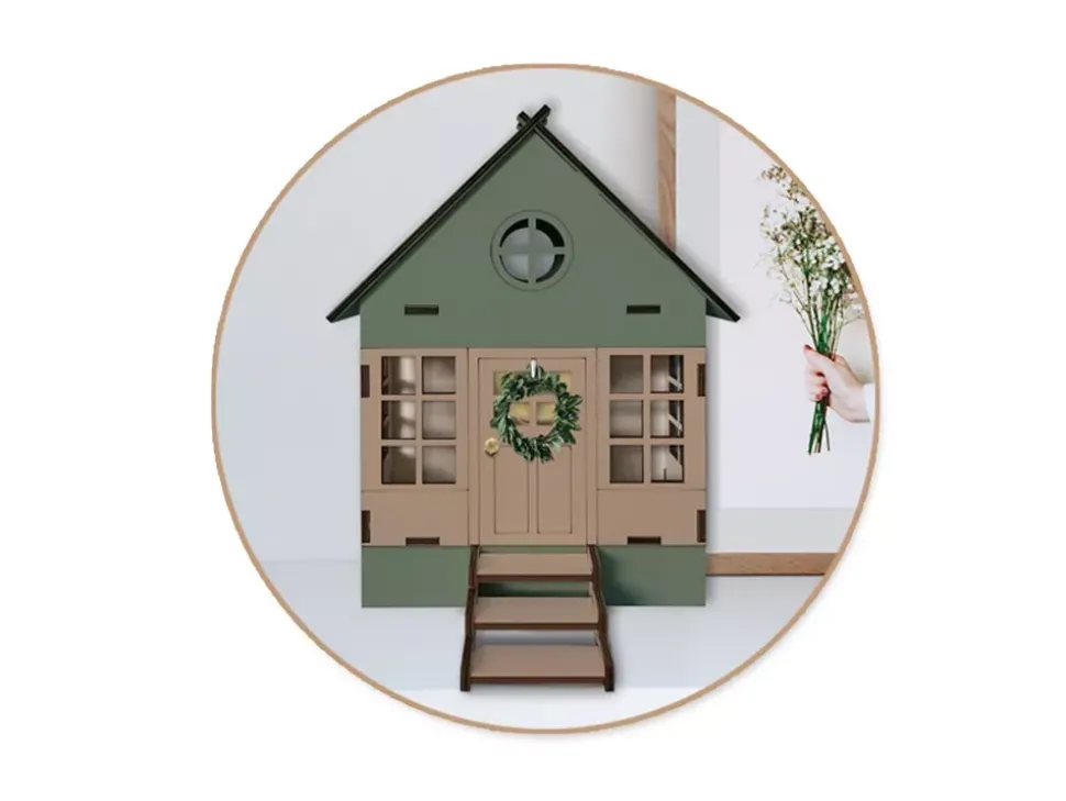 - Casa de muñecas de madera sin tratar para personalizar a tu gusto.