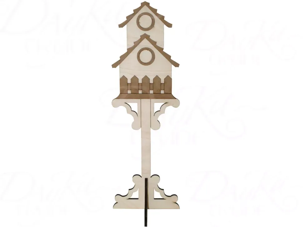 - Silueta de una casita de madera para pájaros con dos pisos y un pie.