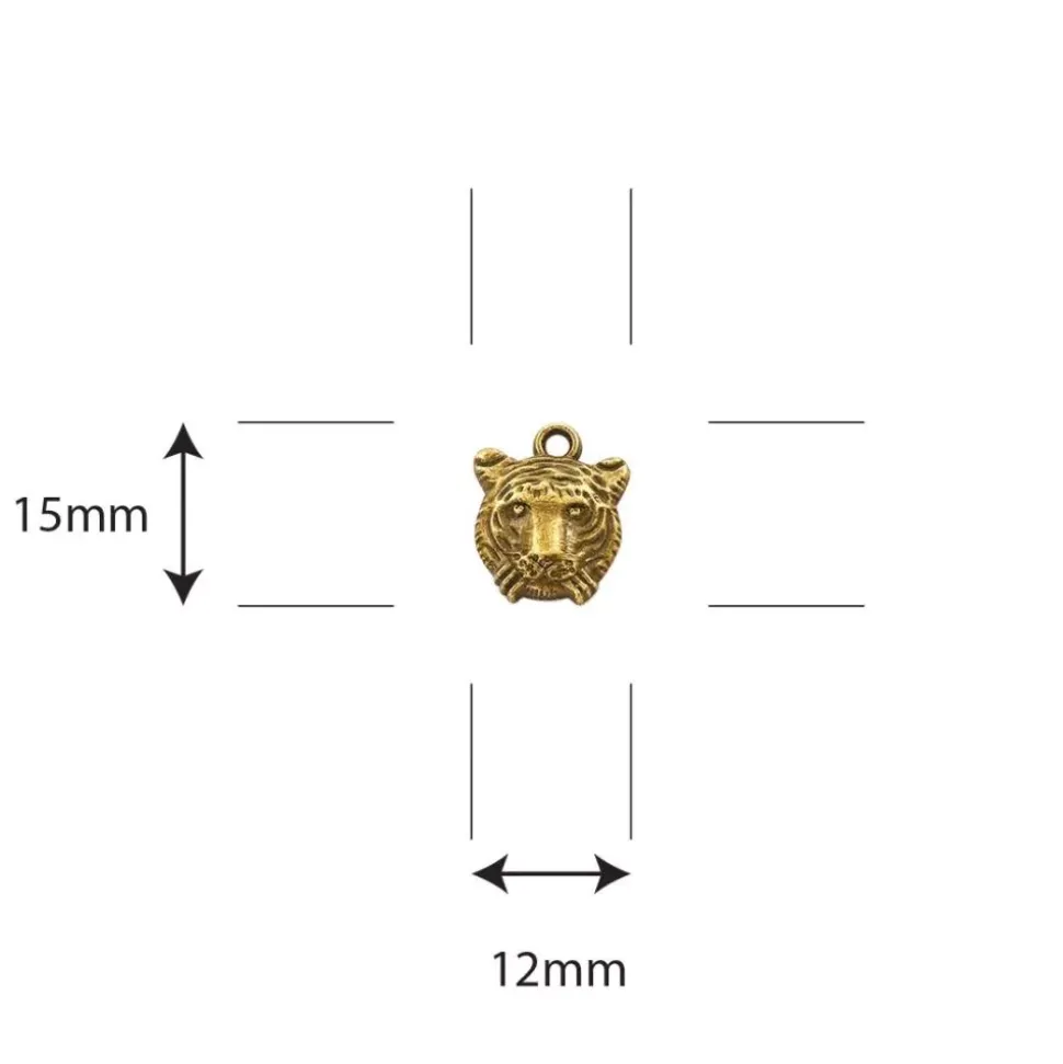 - Charms metálicos con la cabeza de un tigre en dorado.
