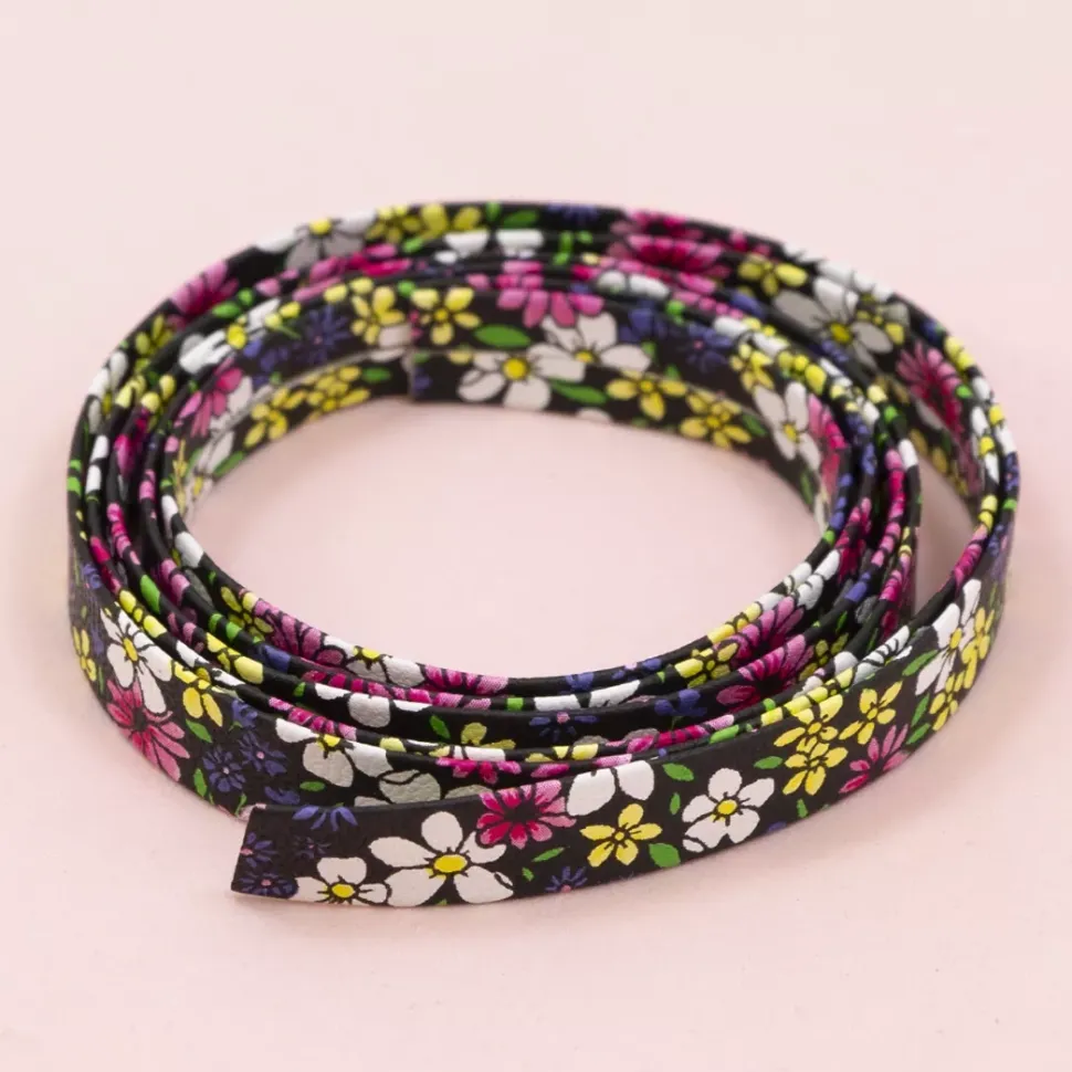 Cinta de Ecopiel Flores Negro Craftelier 1cm