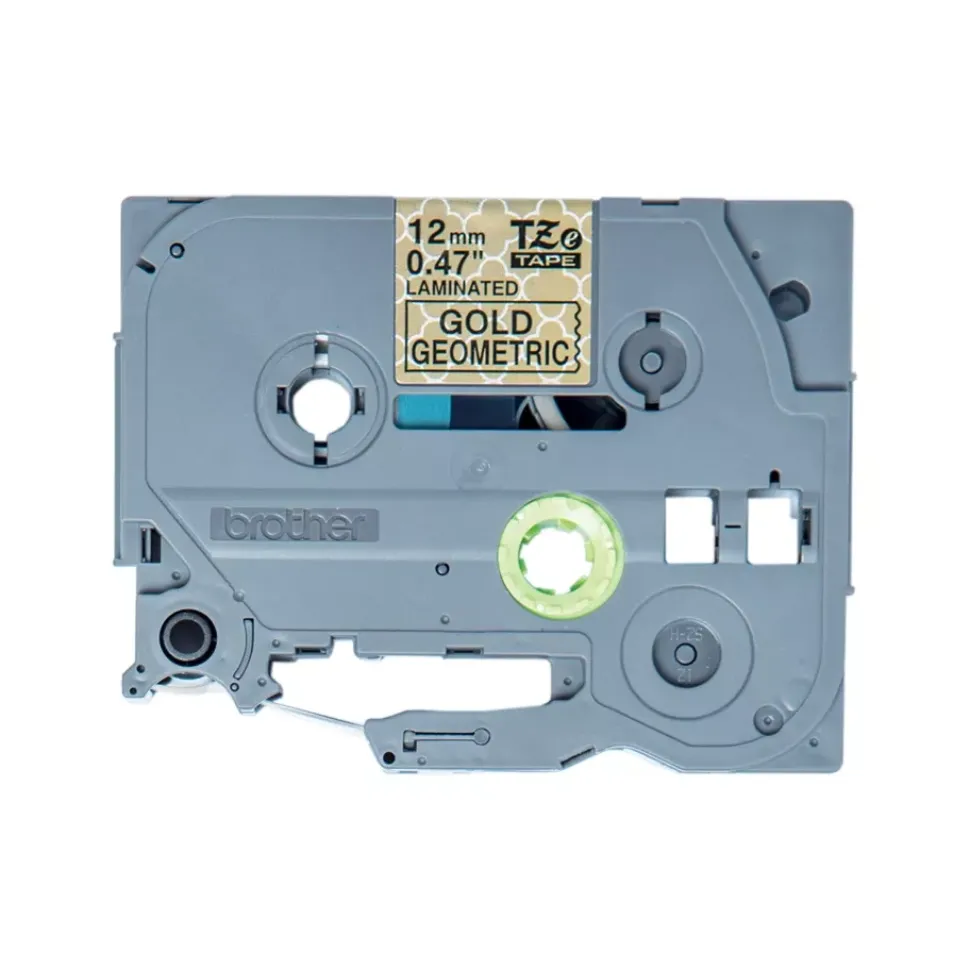 Cinta Negro en Fondo Dorado Geométrico para Impresora de Etiquetas Brother 12mm