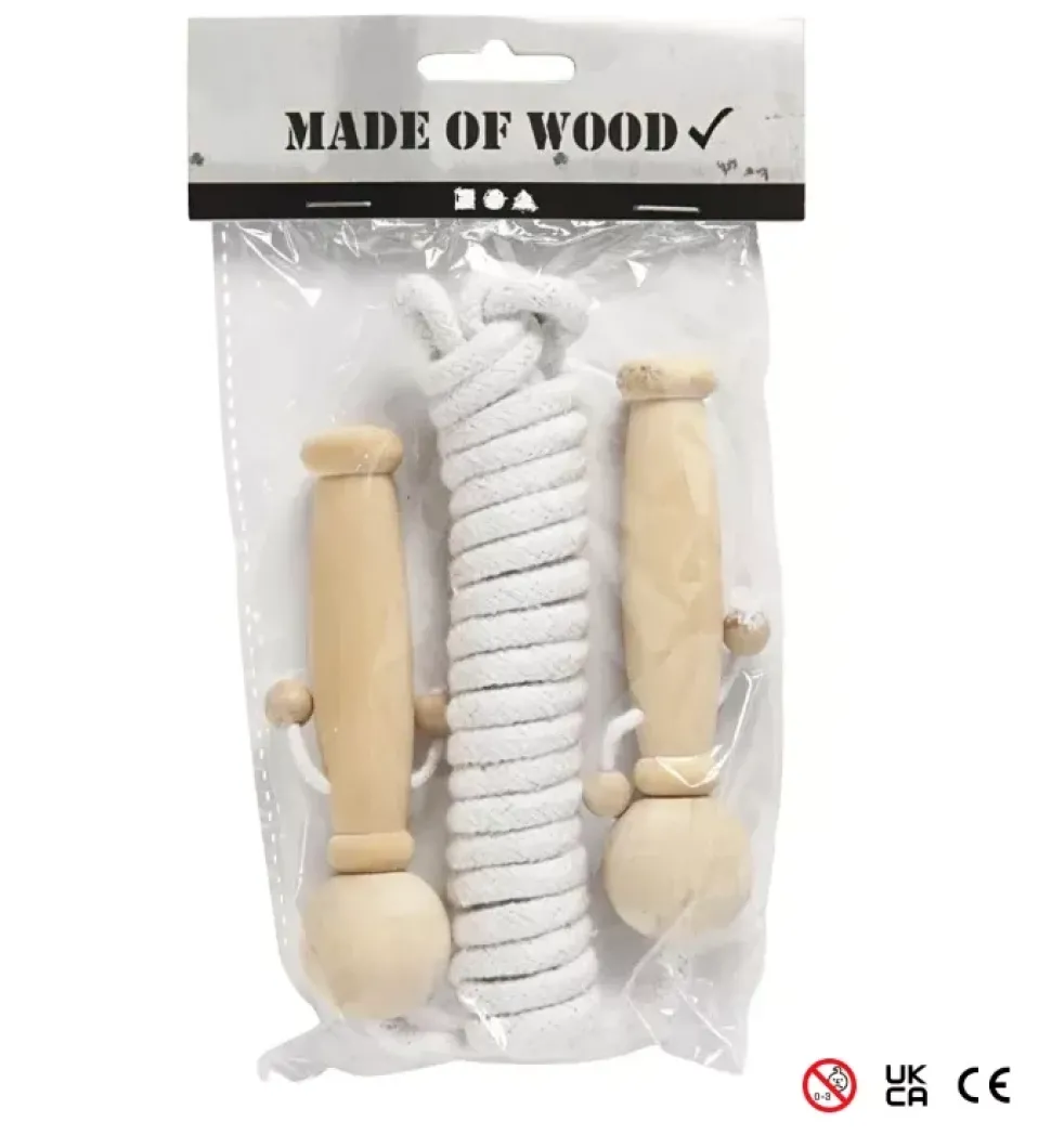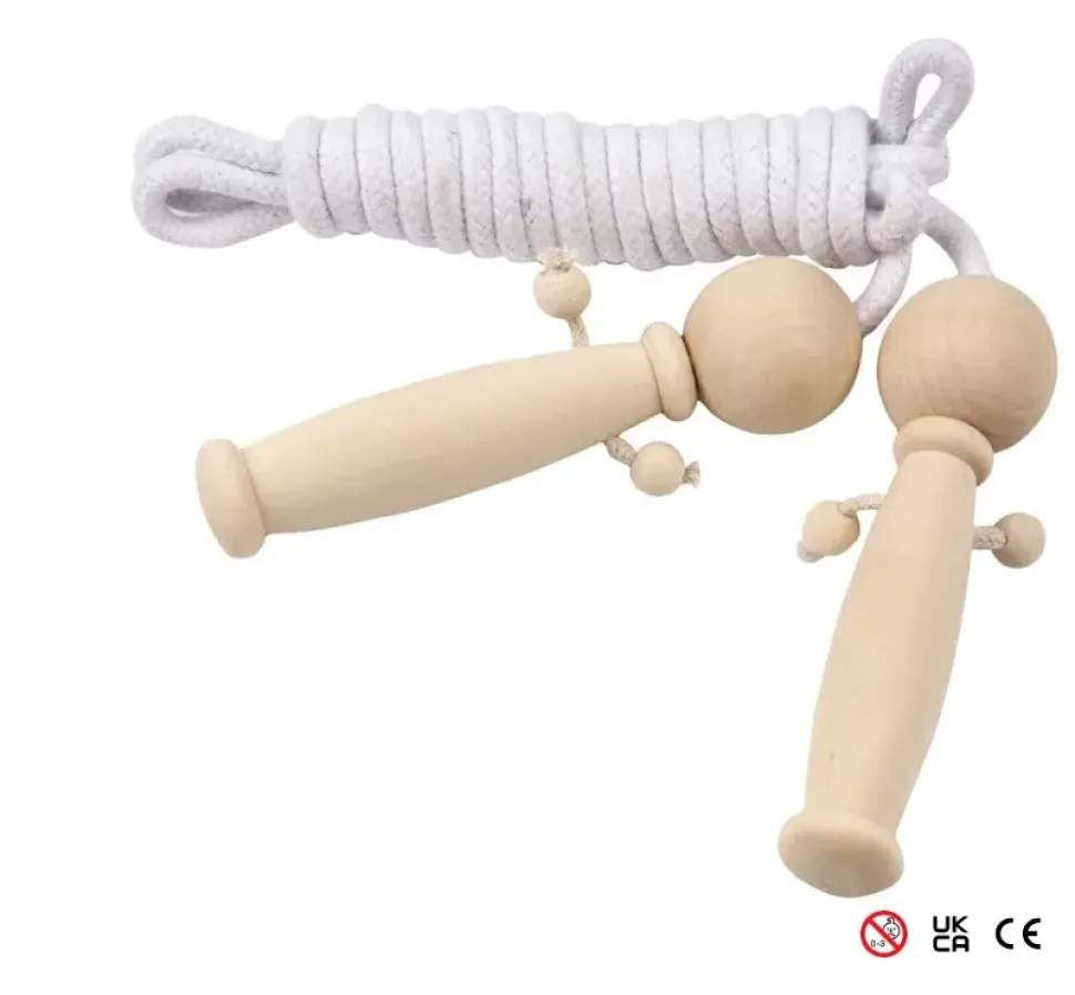 - Cuerda para saltar con asas de madera.
