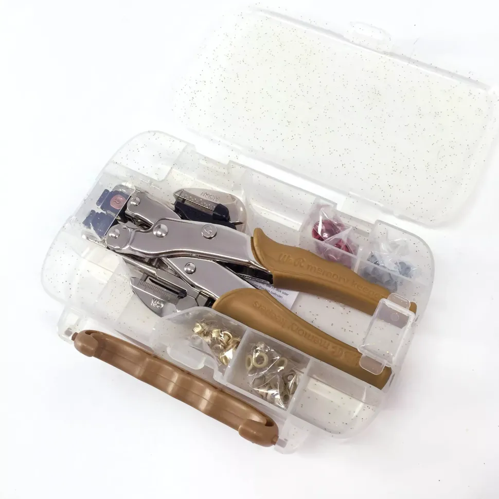 Crop-A-Dile exclusiva ORO, presentada en un estuche protector y con 100 ojales.
