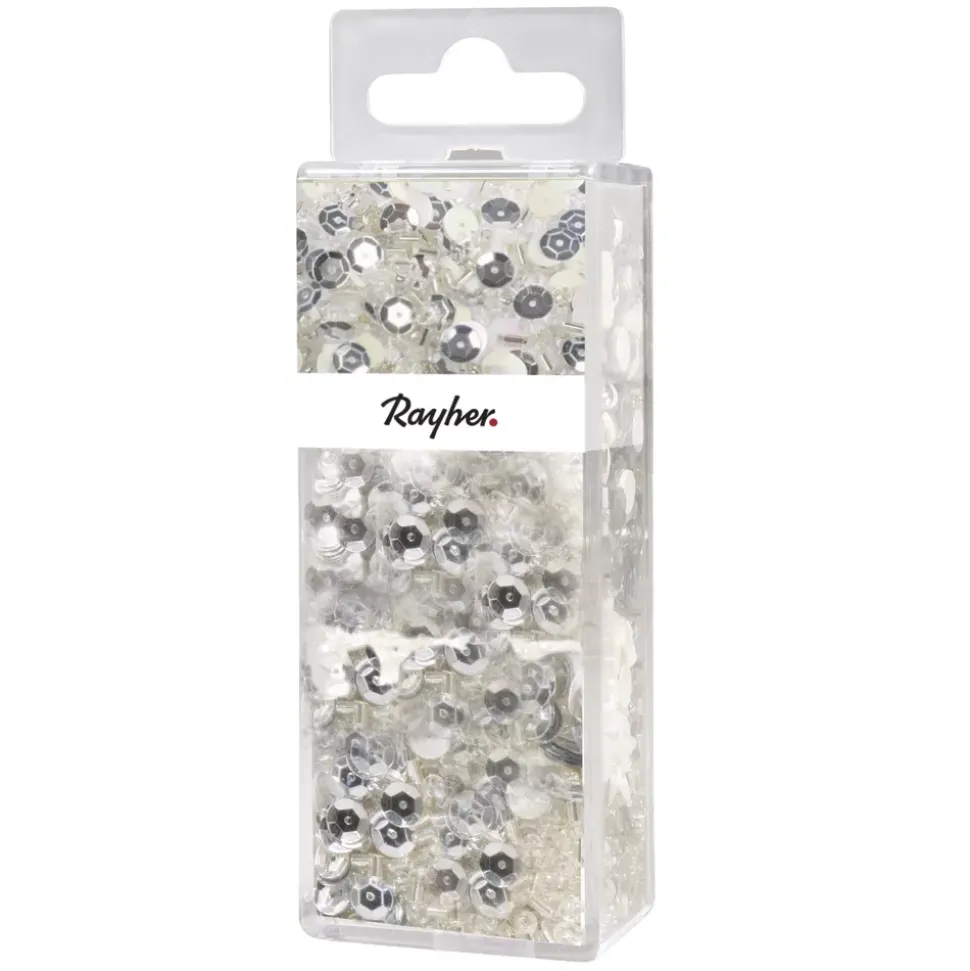 - Preciosas cuentas de vidrio en tonalidad plata.