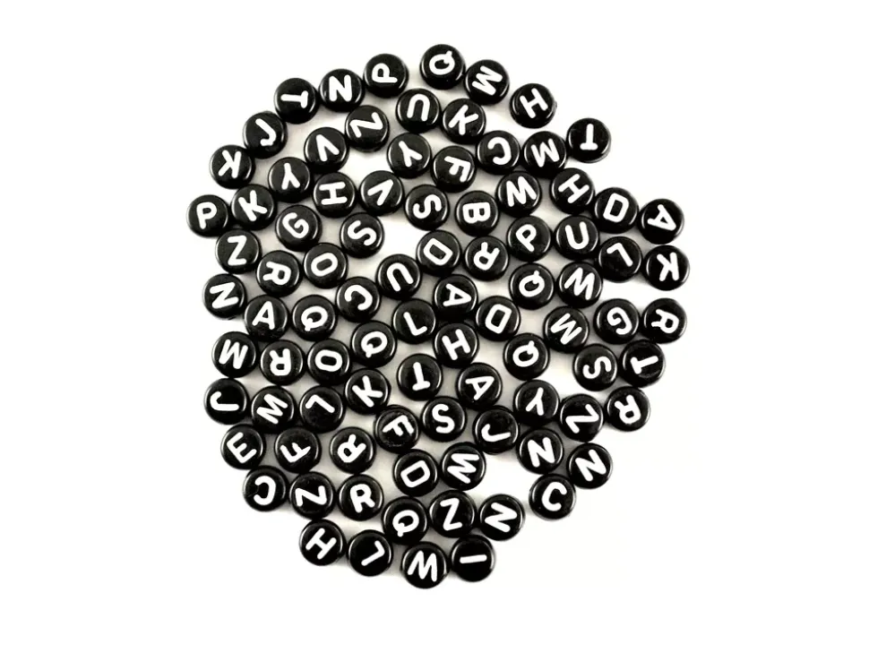 Cuentas Redondas Negras con Abecedario en Blanco MultiCraft 7mm