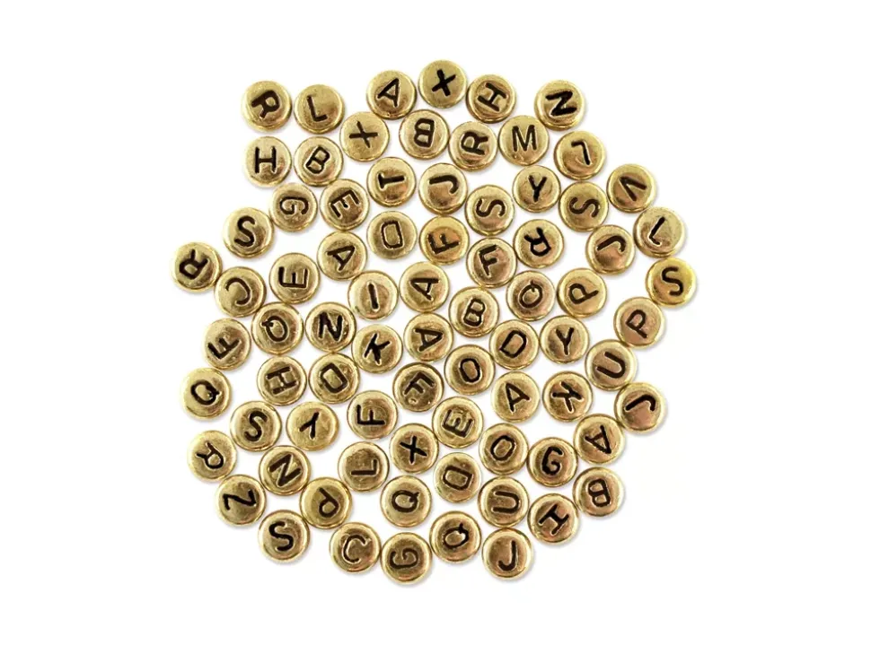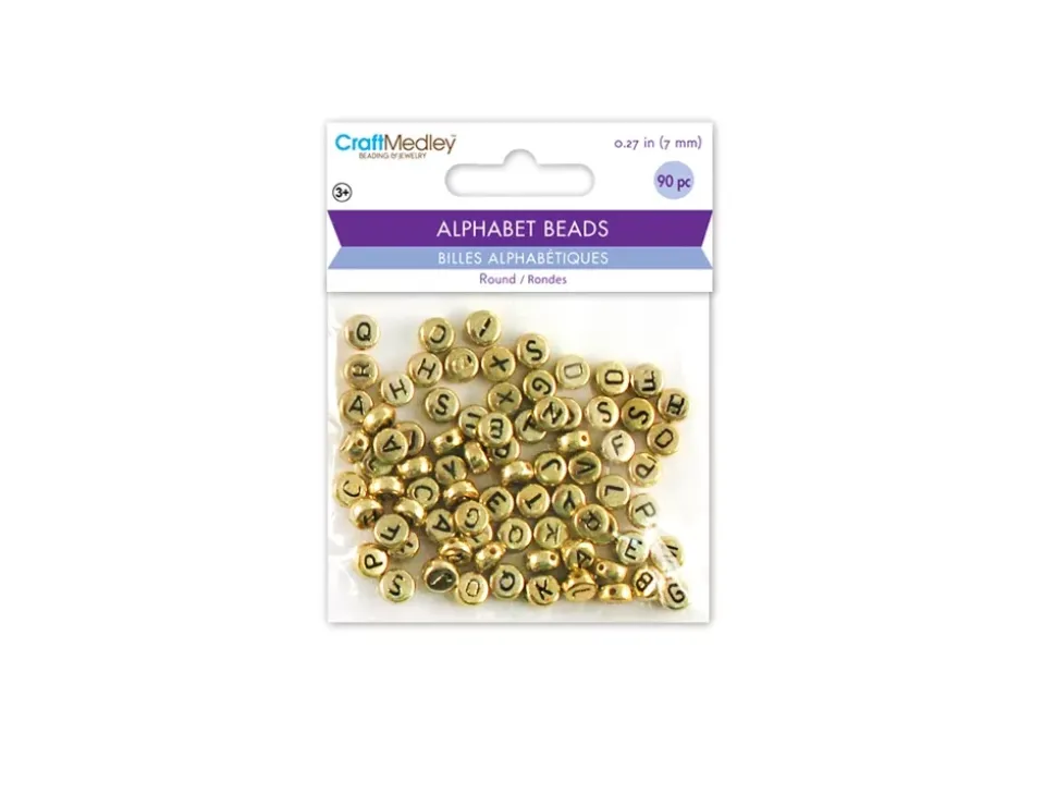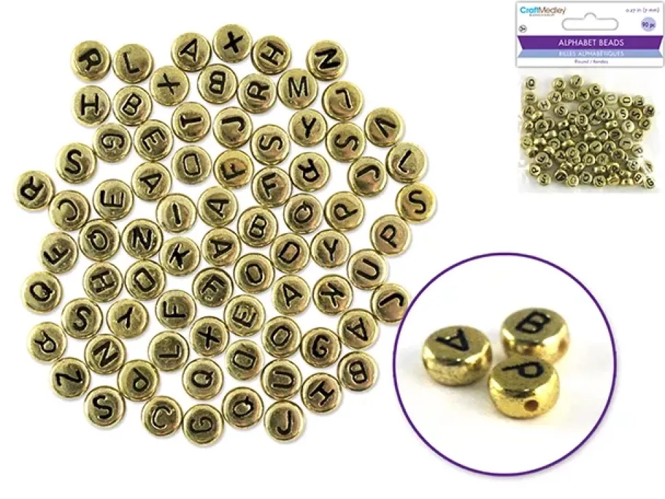 Cuentas Redondas Oro con Abecedario en Negro MultiCraft 7mm