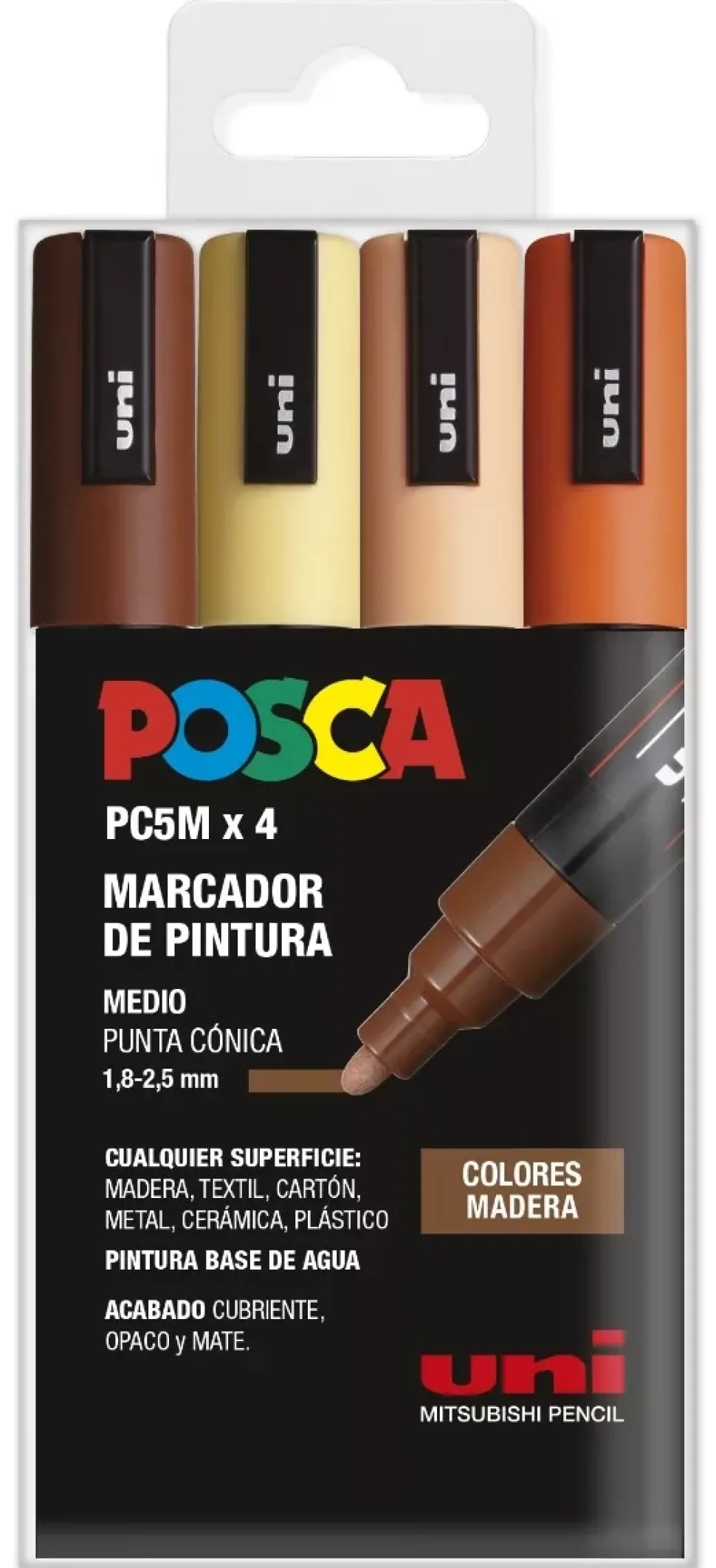 Estuche 4 Rotuladores PC5M Medio Punta Cónica Tonos Madera Uni Posca