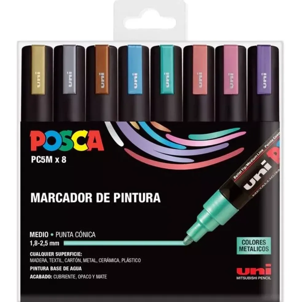 Estuche 8 rotuladores PC5M Medio Metálico Uni Posca 3M