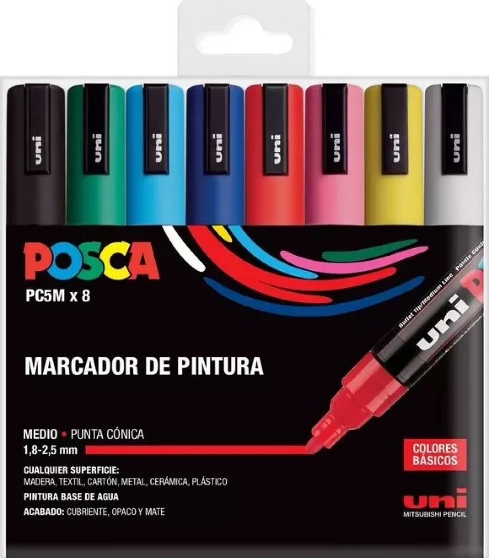 Estuche 8 rotuladores PC5M Medio Uni Posca 3M