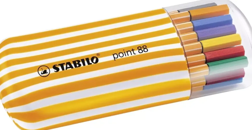 Estuche 20 rotuladores punta fina Point 88 Zebrui STABILO Este estuche incluye 20 rotuladores STABILO point 88 en colores surtidos. El STABILO point 88 de STABILO es el compañero perfecto para estudiantes y profesionales. Punta de fibra con refuerzo metálico. Apto para su uso con reglas y plantillas. No se seca si se deja sin tapón durante largos periodos. Tapón ventilado. Ancho de trazo: 0,4 mm. Marca: STABILO