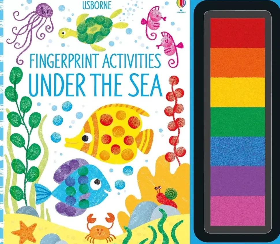 - Este colorido libro de actividades, repleto de divertidas ideas para tomar huellas dactilares, viene con su propia almohadilla de tinta de siete colores brillantes.