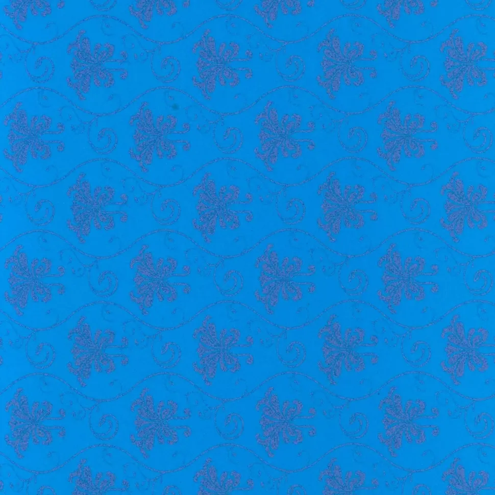 - Ilustraciones de brocados rosas sobre fondo azul.
