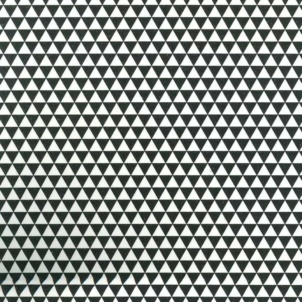 Diseños con motivos de triángulos equiláteros blancos y negros.