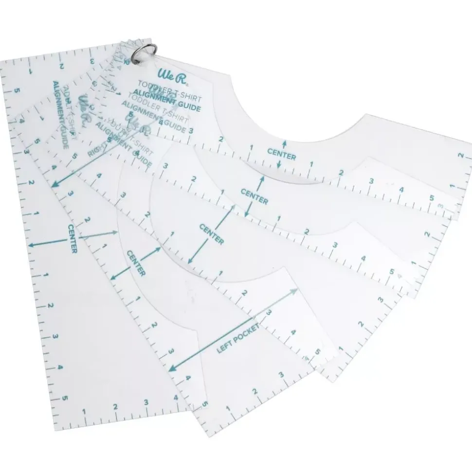 - Las guías de alineación de camisetas ayudan a alinear con precisión los diseños con una variedad de camisetas y tallas diferentes.