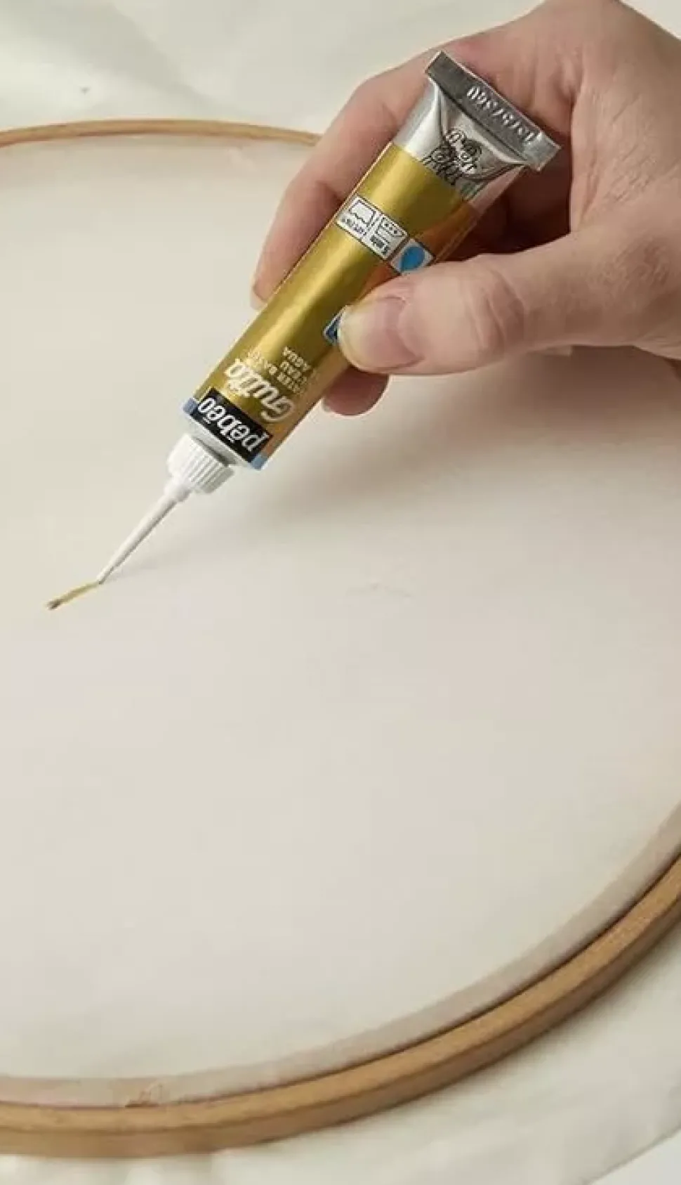 - Gutta al agua para la creación de engarces. Sirve para delimitar zonas y hacer contornos y para evitar que los colores pasen de un lado a otro del tejido.