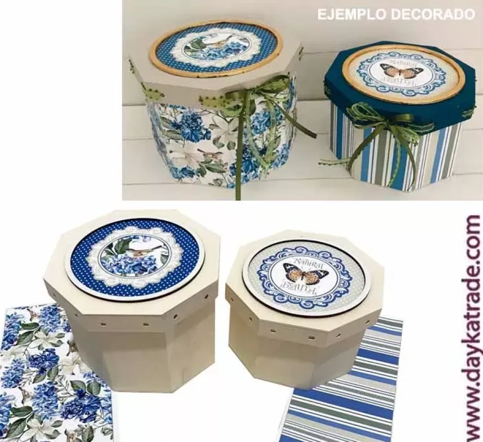 Kit 2 Cajas Octogonales Lazos Flores Azules Dayka Trade
